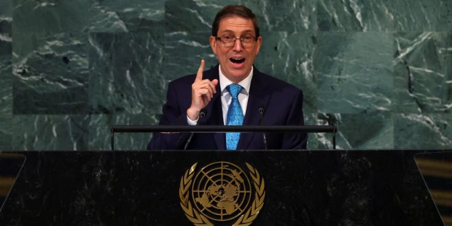 La Habana, 3 nov (SANA) El ministro de Relaciones Exteriores de Cuba, Bruno Rodríguez, presenta hoy en la Asamblea General de Naciones Unidas (AGNU) el proyecto de resolución sobre la necesidad de poner fin al bloqueo estadounidense contra la isla.