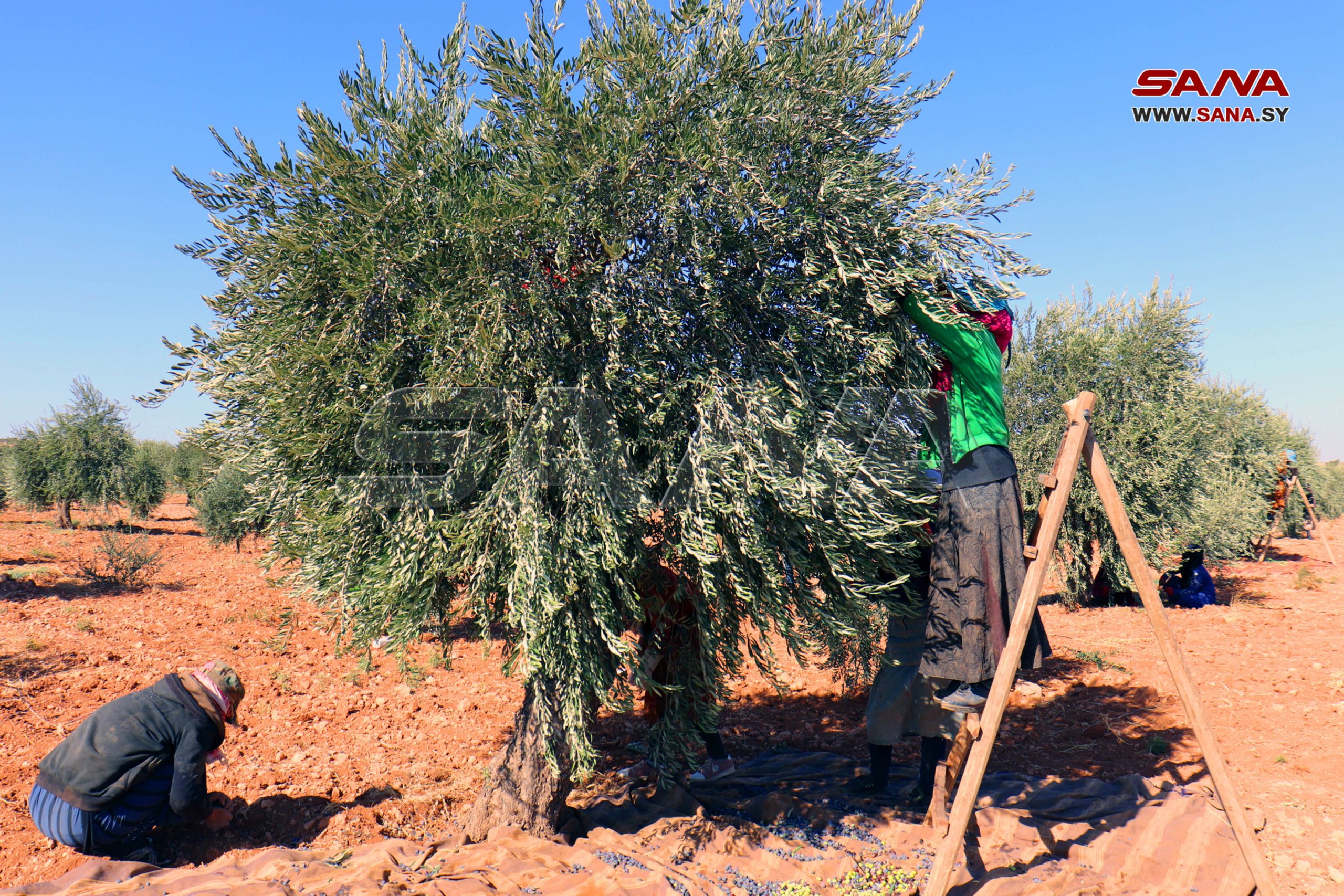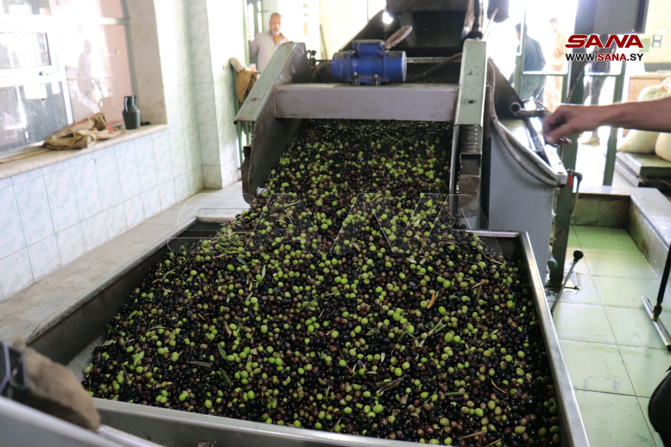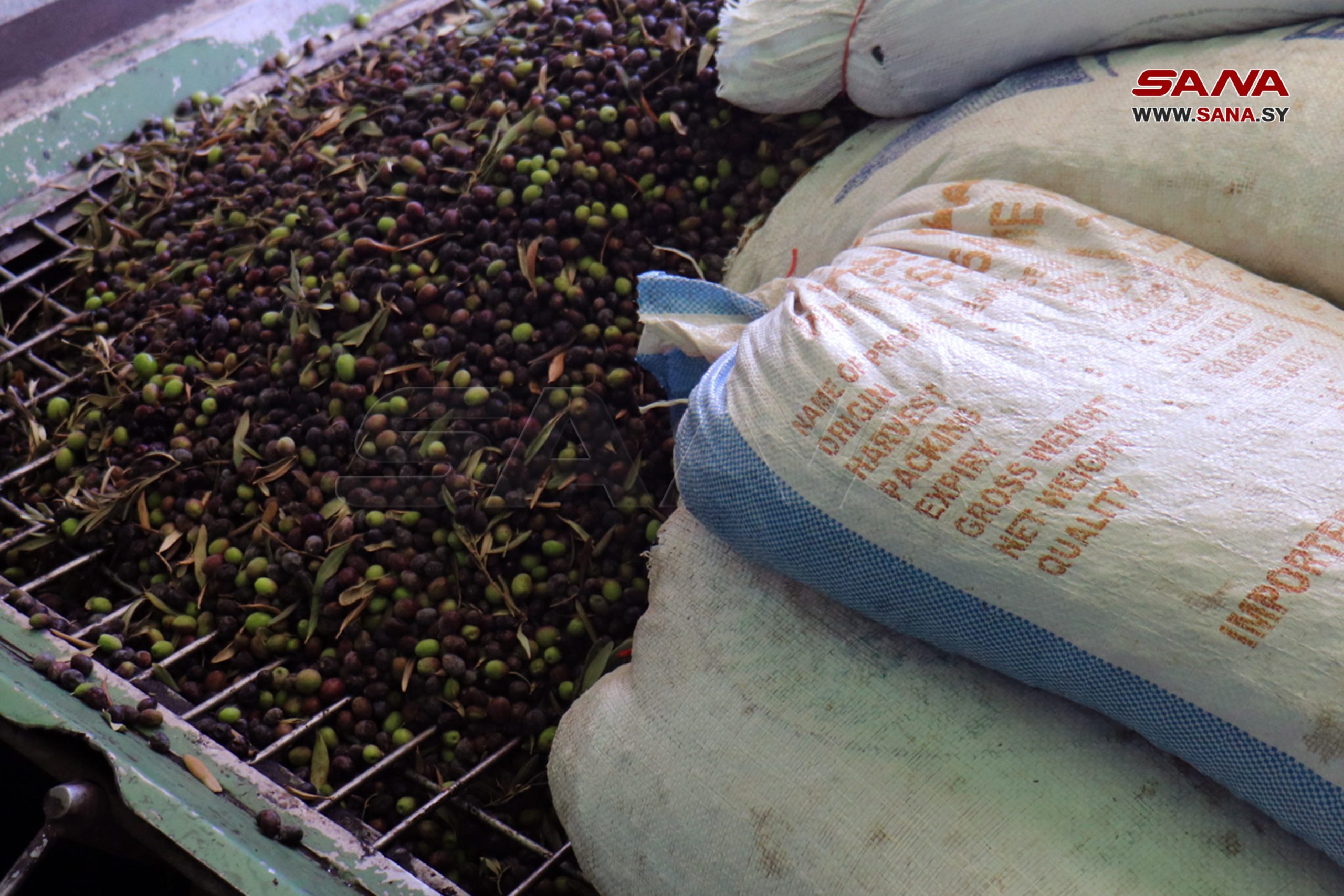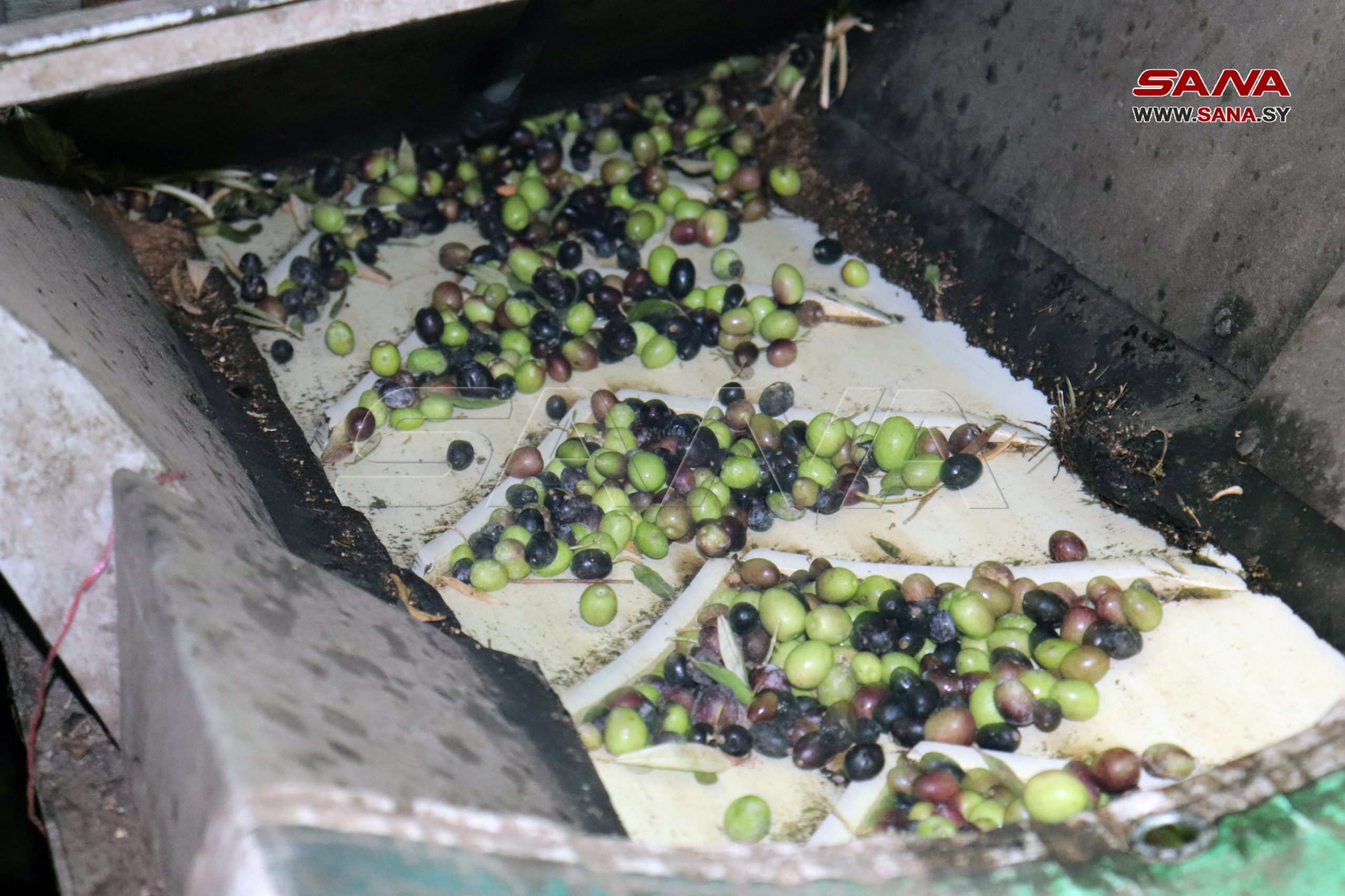 Cosecha de aceitunas y el procesamiento del aceite de oliva en provincia de Alepo