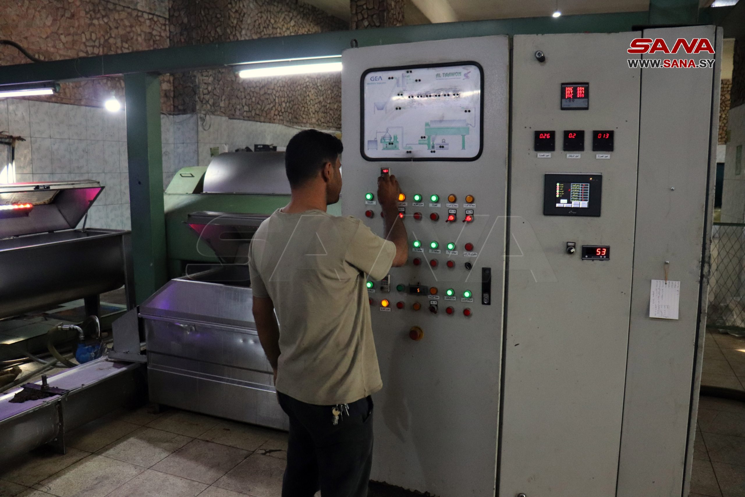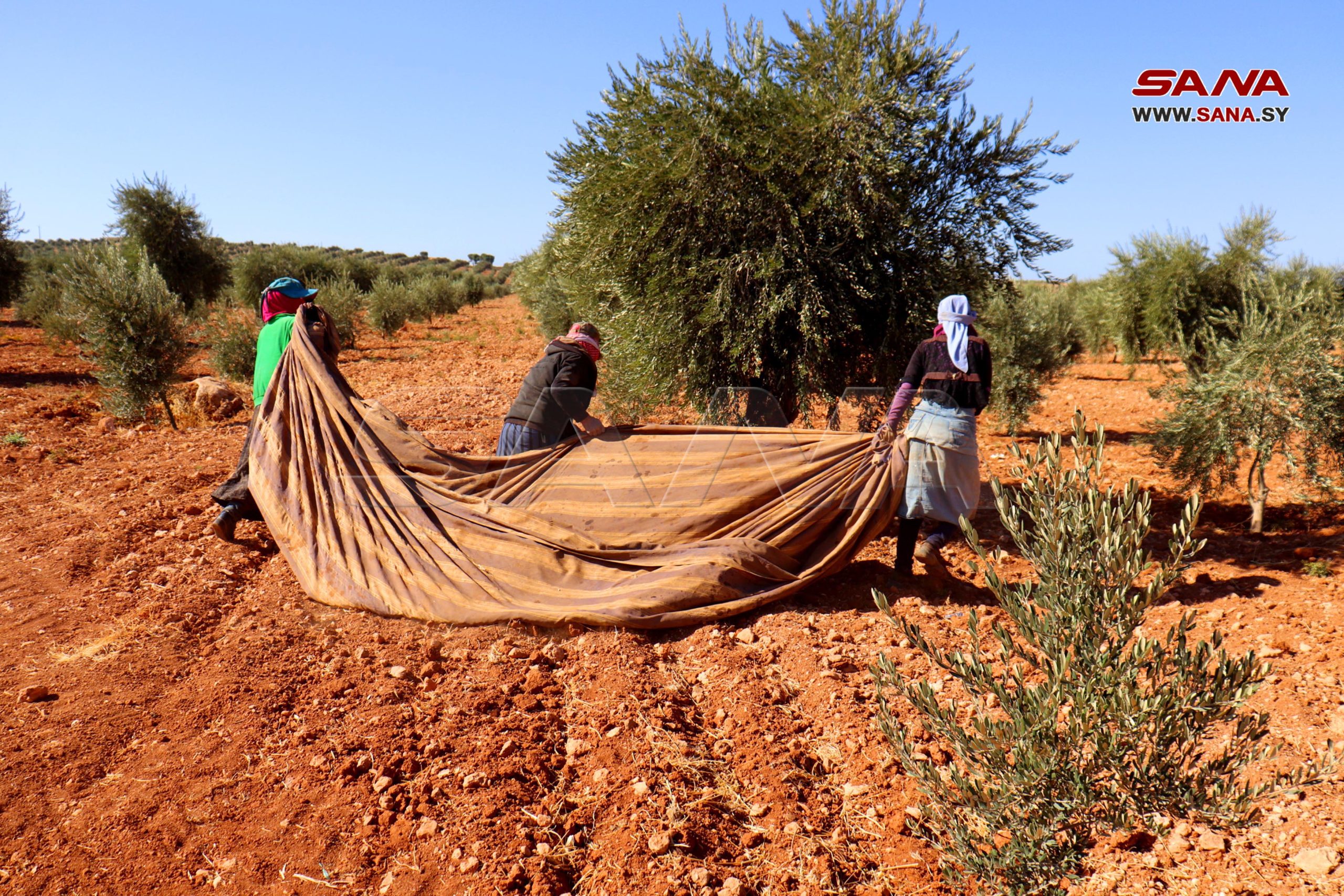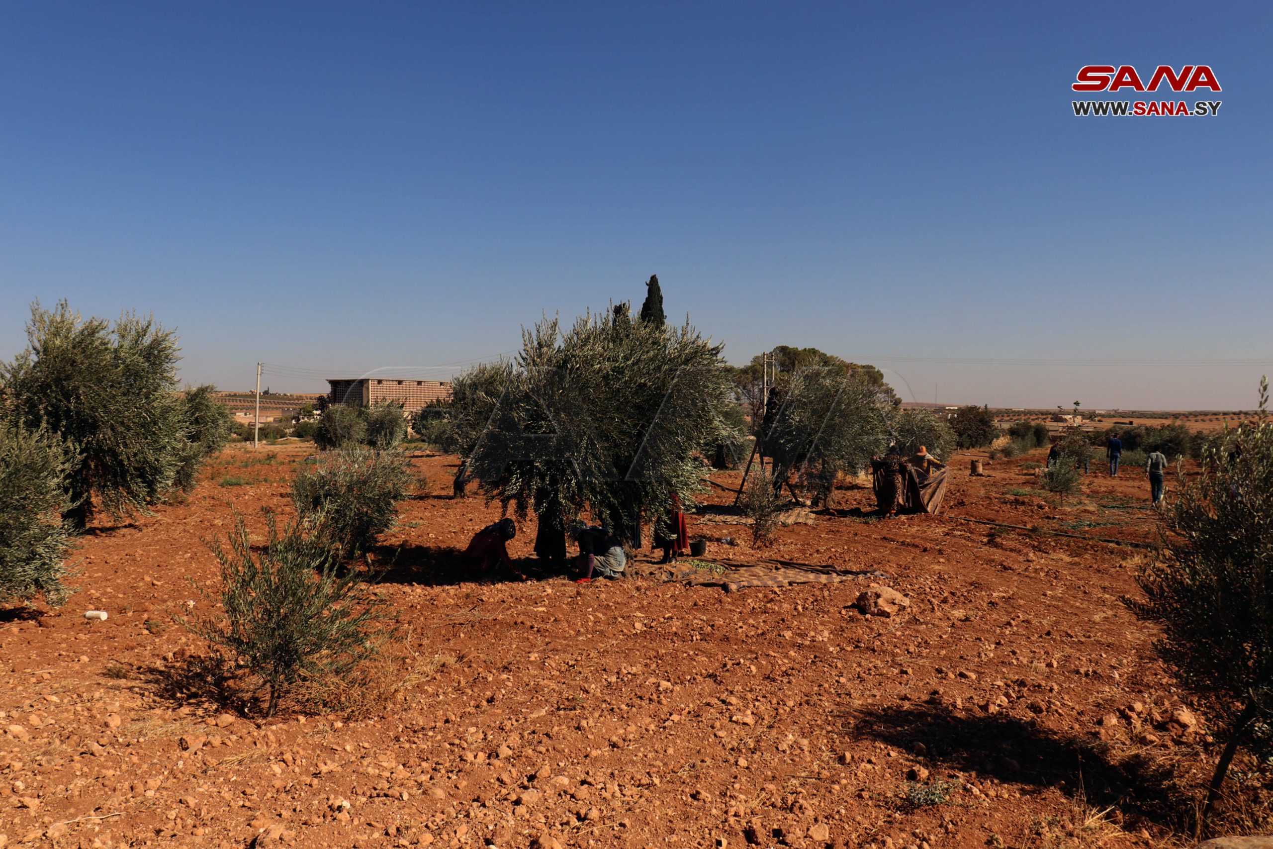 Cosecha de aceitunas y el procesamiento del aceite de oliva en provincia de Alepo