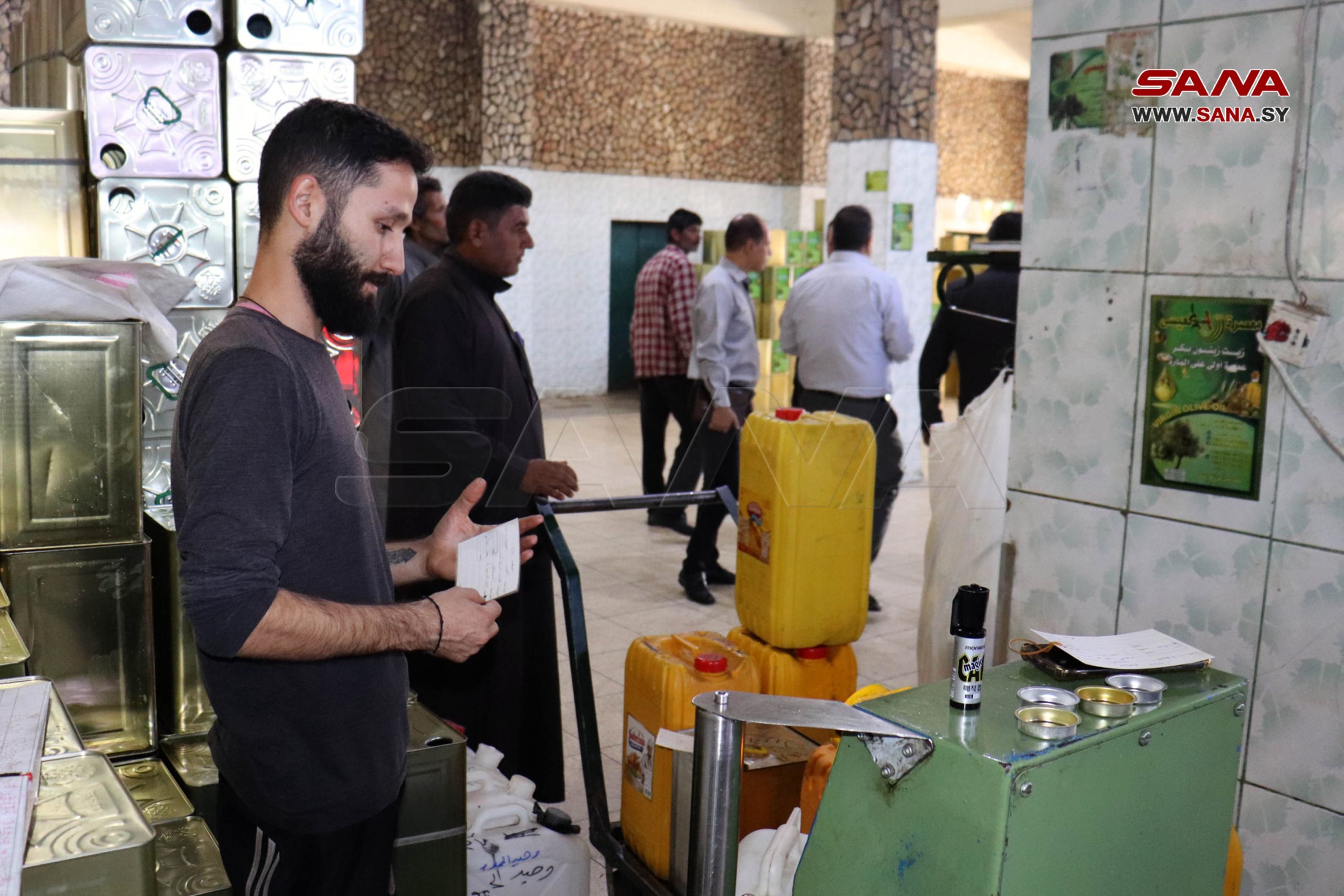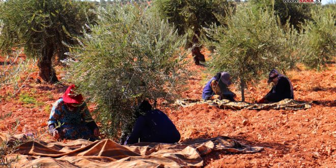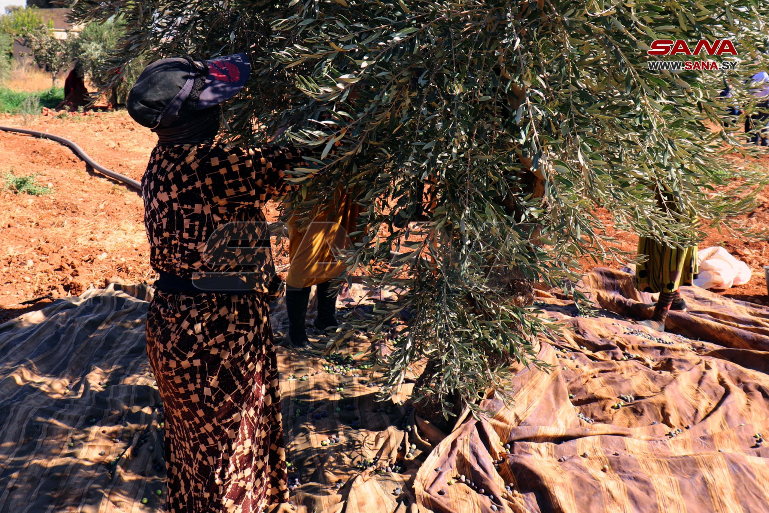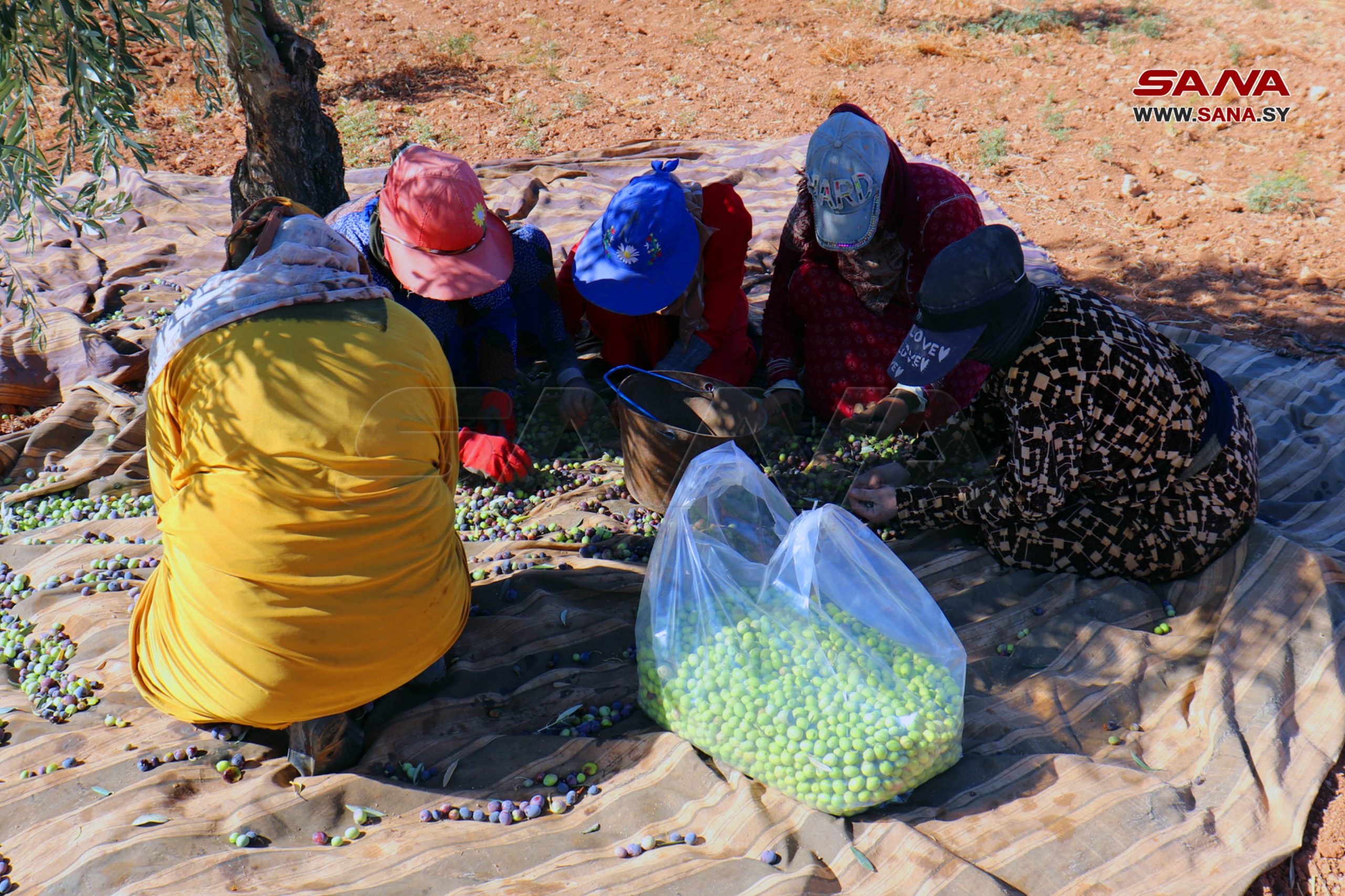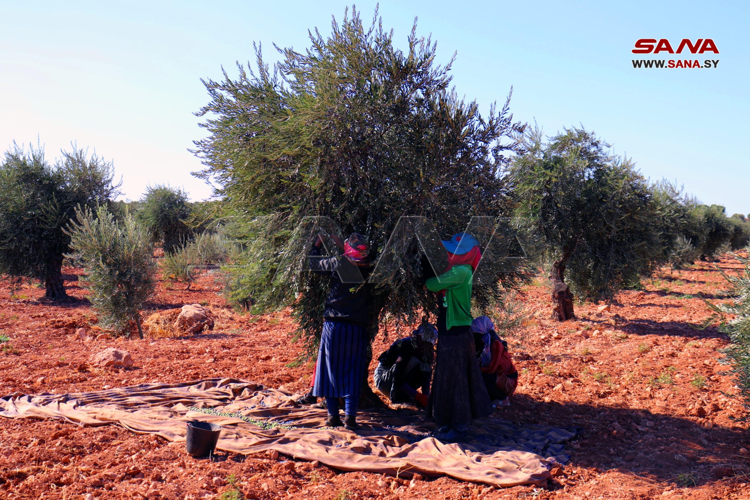Cosecha de aceitunas y el procesamiento del aceite de oliva en provincia de Alepo