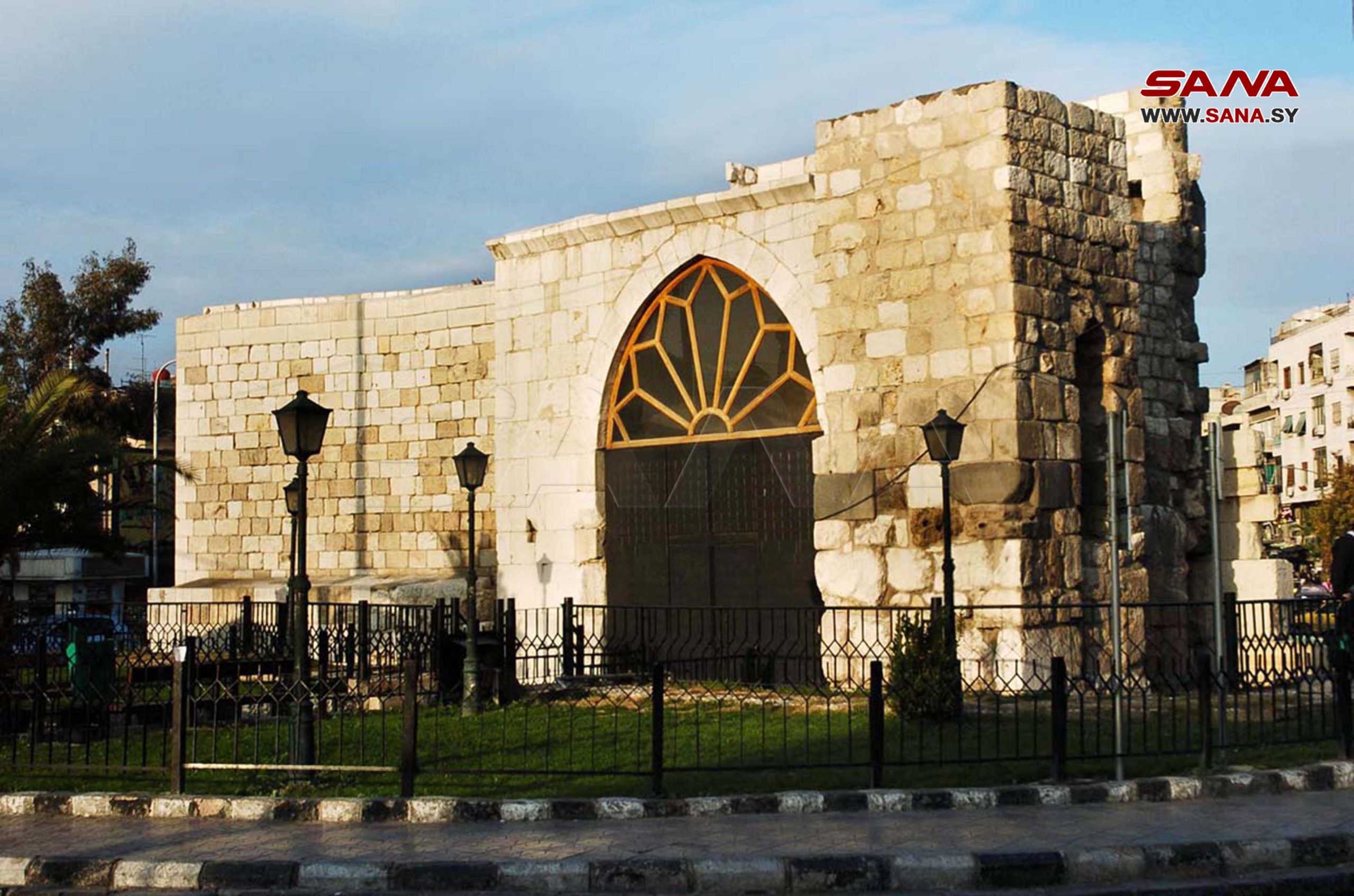 4- Puerta Oriental (Bab Sharqi, en árabe), simboliza el Sol y está ubicada en la entrada oriental de la ciudad vieja de Damasco, y es la única que conserva el estilo arquitectónico romano.