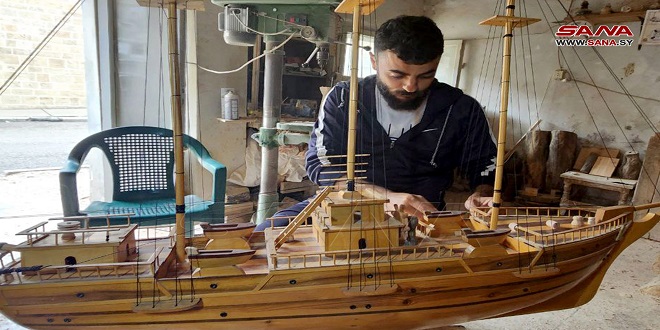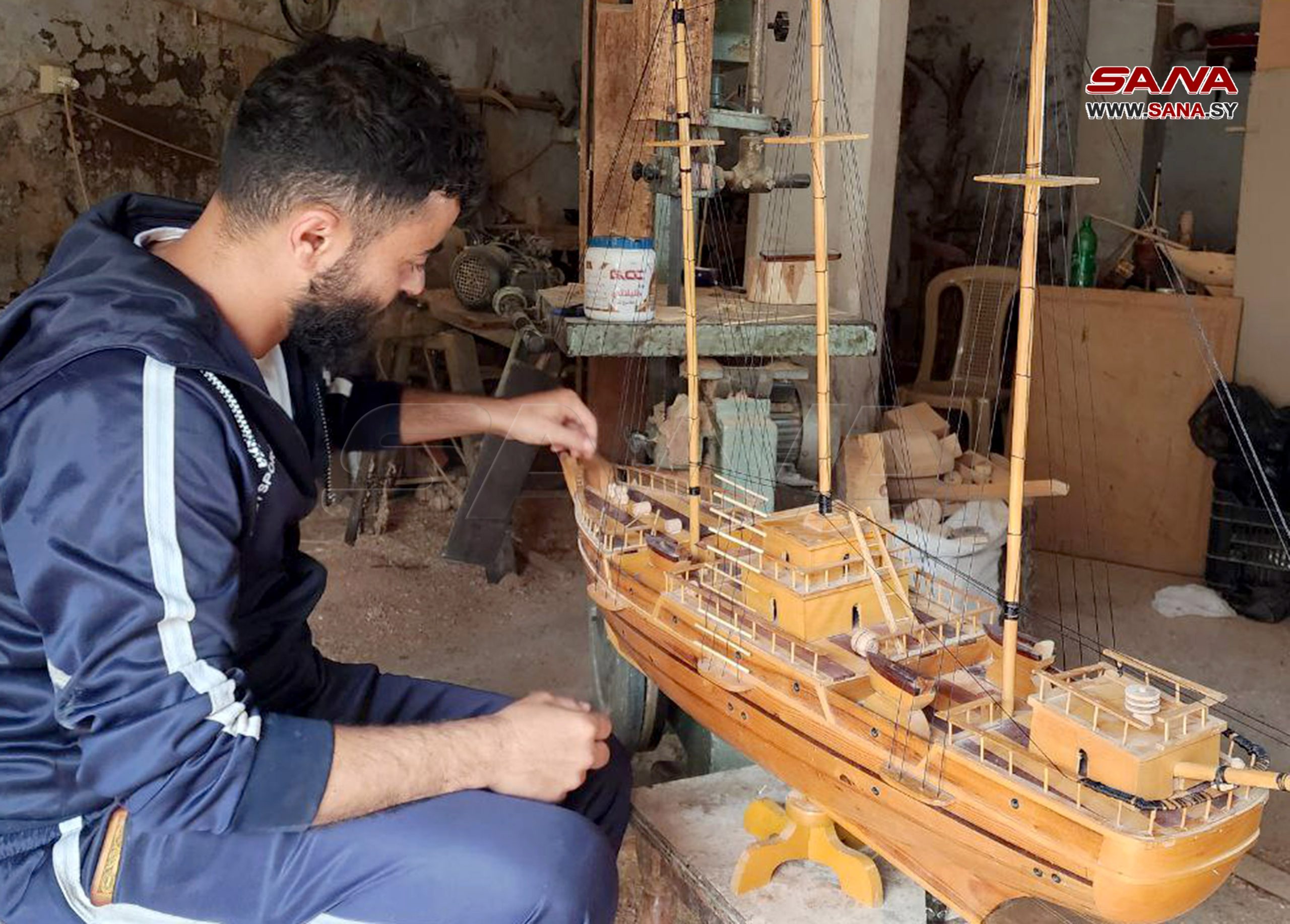 Tartous, 9 nov (SANA) El joven sirio Muhannad Riba, oriundo de la ciudad de Banias, en la costa siria, creó su propio proyecto para fabricar maquetas de madera elaborando barcos y veleros con una alta precisión y profesionalismo.