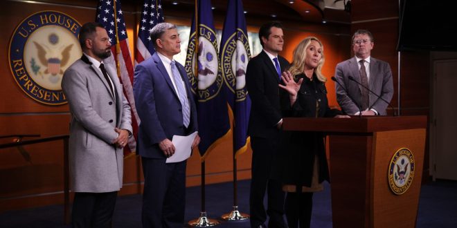 Marjorie Taylor Greene, quien encabeza la iniciativa, publicó en su cuenta de Twitter un video con militares ucranianos y escribió: “Es desgarrador ver a estos soldados discapacitados ucranianos aquí en los pasillos del Congreso que están siendo utilizados como peones para presionar a nuestro Congreso para dar a Zelenski dólares de impuestos estadounidenses duramente ganados”.