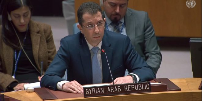 Durante una sesión del Consejo de Seguridad, el diplomático subrayó que los pretextos utilizados por el régimen turco para justificar sus agresiones contra el territorio sirio ya no engañan a nadie, especialmente a la luz de su continuo apoyo a las organizaciones terroristas y patrocinio a Daesh y el Frente de al-Nousra.