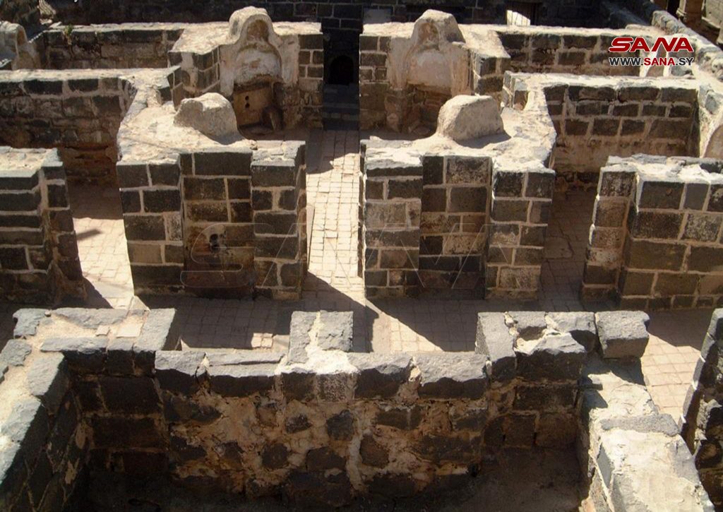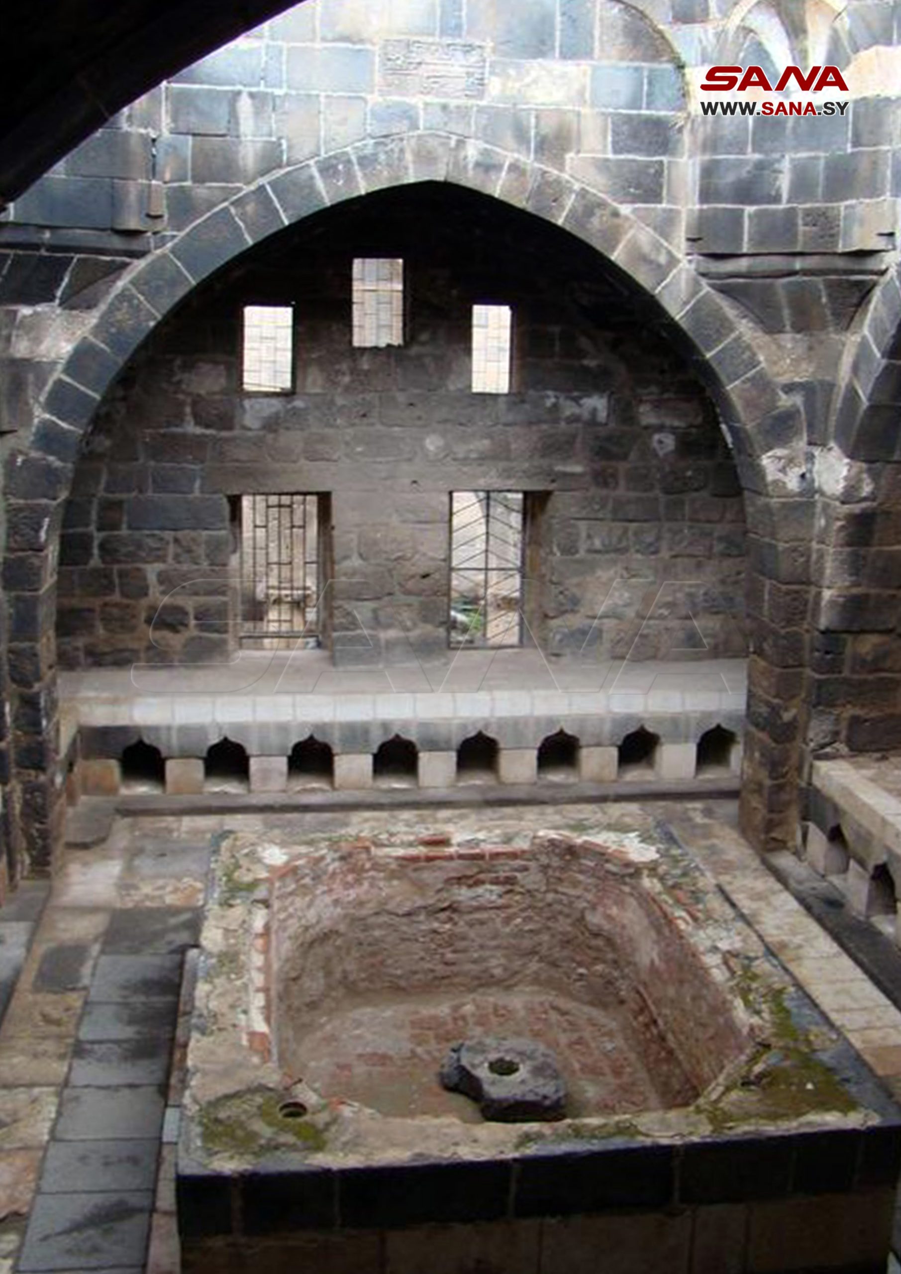 Deraa, 30 nov (SANA) El baño arqueológico de Manjek al-Yousifi constituye uno de los edificios arquitectónicos más finos en la era mameluca y un logro que contribuyó a mejorar los servicios públicos en la ciudad de Bosra al-Sham.