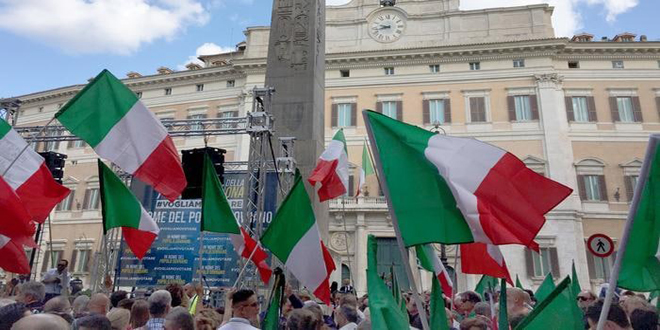 Según informaron medios italianos, la capital italiana fue el centro de una concentración de unos 10.000 manifestantes, que portaron pancartas con frases “Menos armas, más salarios” y otros coreaban (Digamos no).