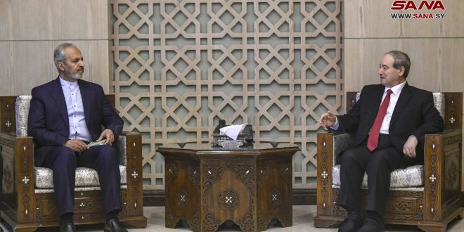 Damasco, 11 dic (SANA) El ministro de Asuntos Exteriores y Expatriados, Faisal Al-Mekdad, recibió hoy en la sede de la Cancillería en Damasco, al viceministro de Relaciones Exteriores de Irán para Asuntos Consulares, Ali Reza Bekdli, y la delegación acompañante.