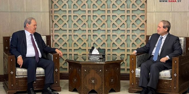 Damasco, 12 dic (SANA) El ministro de Asuntos Exteriores y Expatriados, Faisal Al-Mekdad, recibió este lunes al presidente del Consejo Nacional Palestino, Rawhi Fattouh, y la delegación que le acompaña.