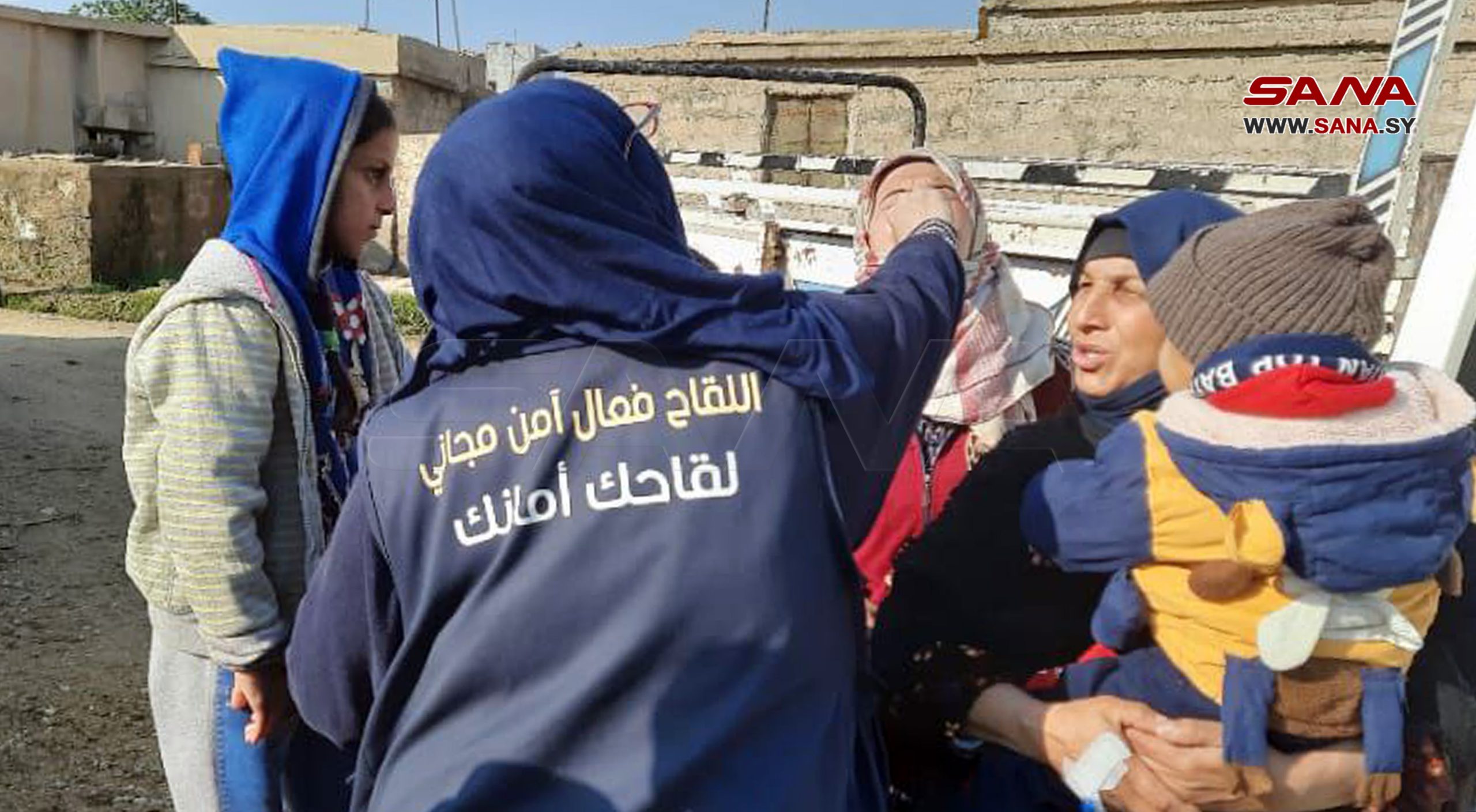 En Raqa, la campaña abarcó el campo liberado, según el director de Salud, Dr. Ghiath Al-Hamoud, quien confirmó que el personal médico sigue brindando sus servicios a través de 38 centros de salud y 90 equipos ambulantes.