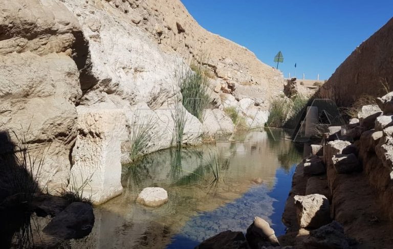 Este manantial nace desde una cueva arqueológica en las rocas y fluye desde hace 6 mil años; también se considera un importante hito turístico que devolvió la vida a las palmeras y olivos.