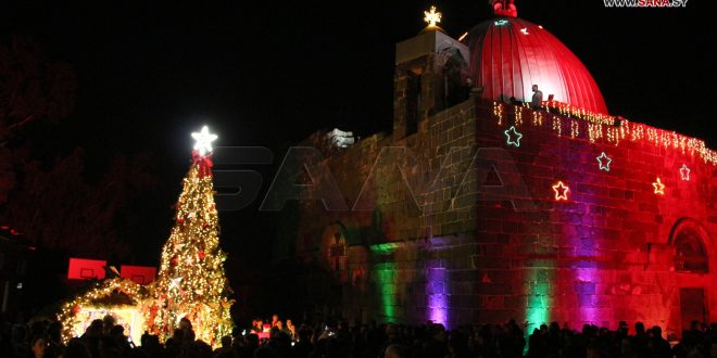 Deraa, 20 dic (Sana) Con motivo de la Navidad y el Año Nuevo, se efectuó la víspera una ceremonia en la Iglesia Ortodoxa Griega de San Jorge en la provincia de Deraa, en la que se encendieron las luces del árbol de Navidad.