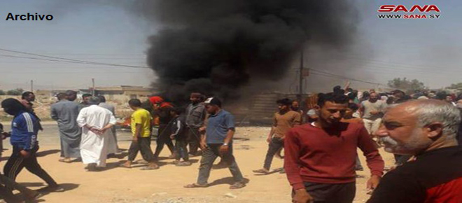 Activistas locales informaron a SANA que durante la manifestación, los ciudadanos bloquearon las carreteras con neumáticos en llamas y corearon consignas contra (FDS) y el llamado (líder del Consejo Militar de Deir Ezzor, Ahmad al-Khabil), afiliado a la referida milicia, tras varios crímenes cometidos contras los civiles a manos de sus familiares y compañeros.