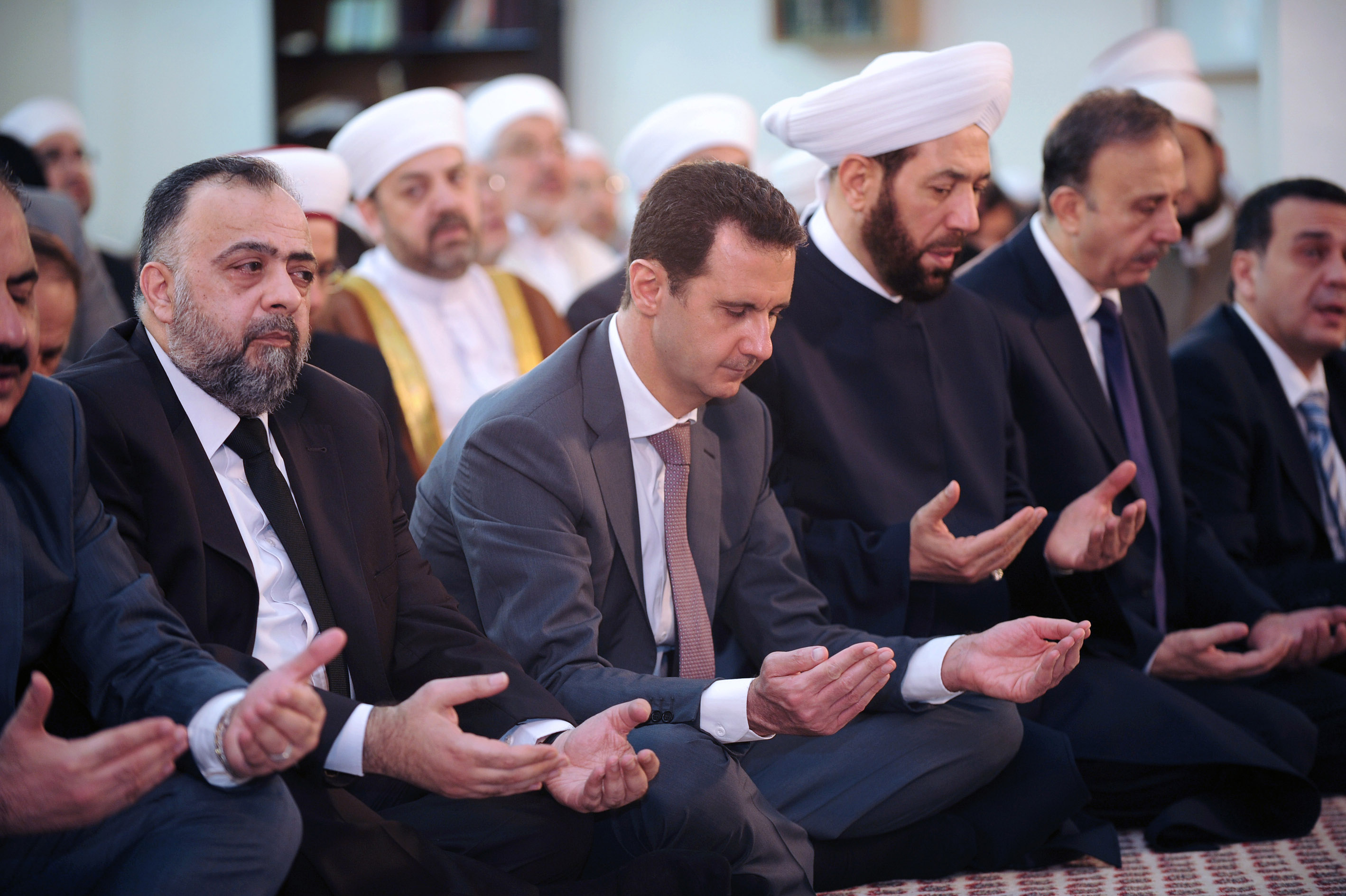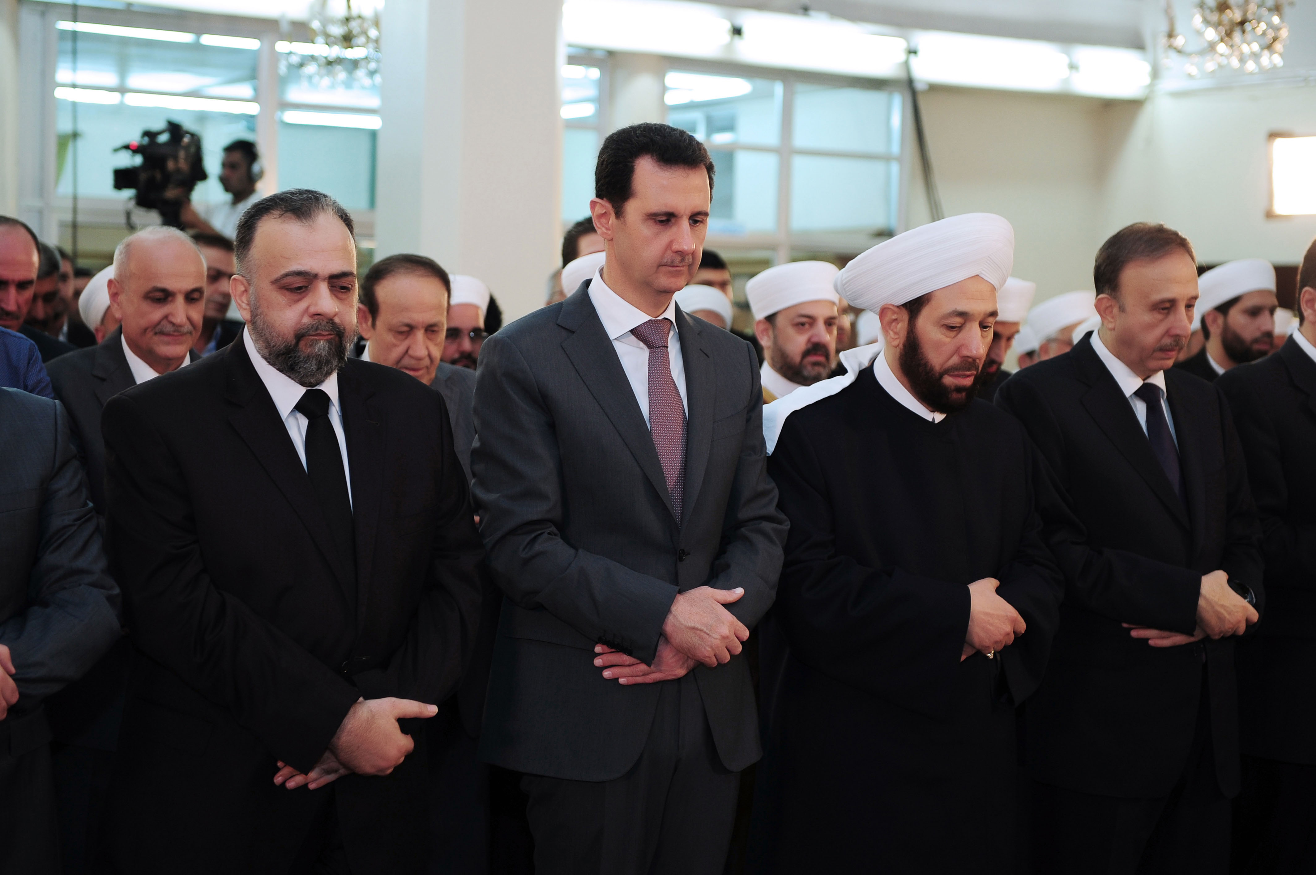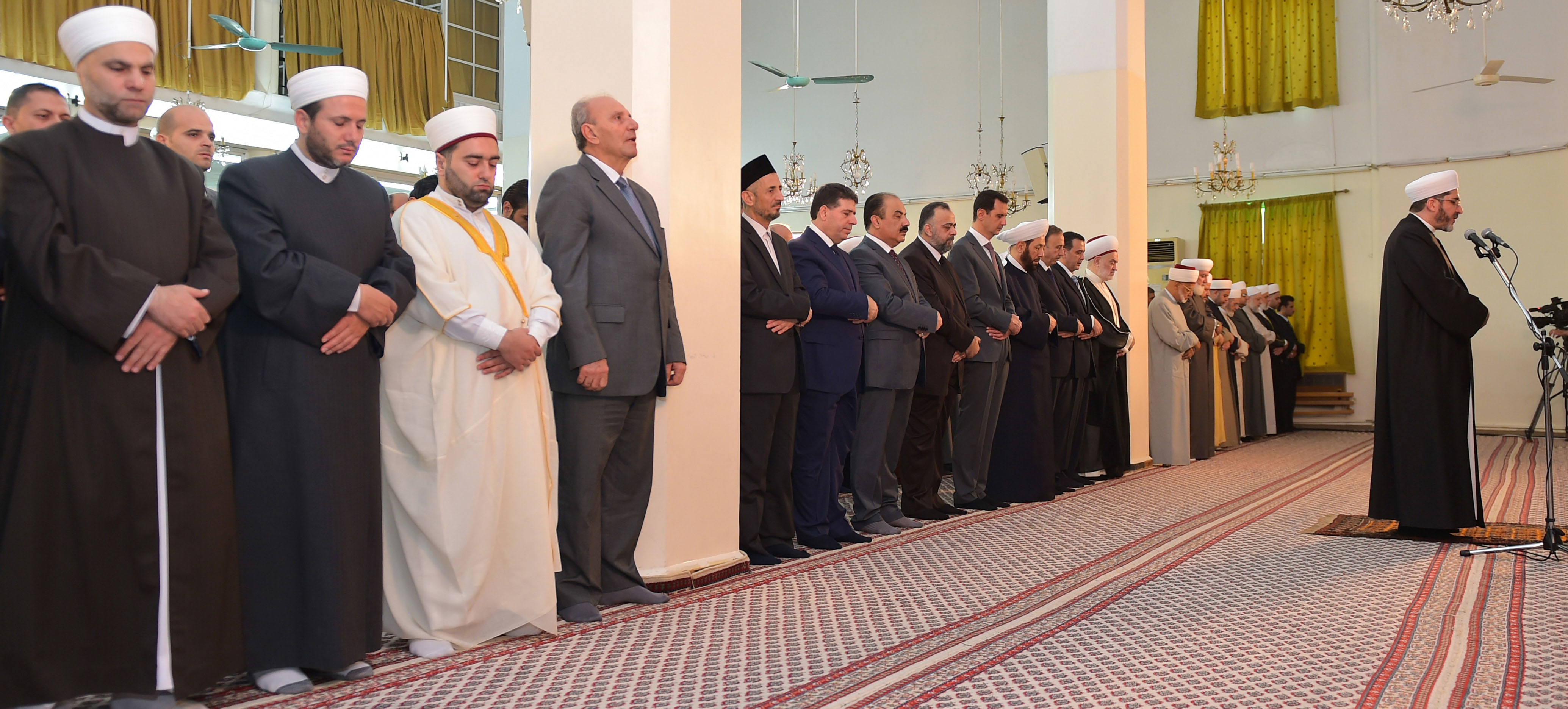 El presidente de la República, Bashar al-Assad, efectuó esta mañana del viernes, el rezo de Eid al-Fitr en la mezquita al-Hamad, en la capital Damasco.Eid al-Fitr es la fiesta musulmana celebrada después del fin del Ramadán, mes del ayuno musulmán.Efectuó el rezo junto al presidente a-Assad altos cargos en el Partido y el Estado, y un número de diputados de la Asamblea del Pueblo, además del ministro de Asuntos Religiosos (Awkaf) y el muftí general de la República, y un número de ulemas musulmanes y un público de ciudadanos.