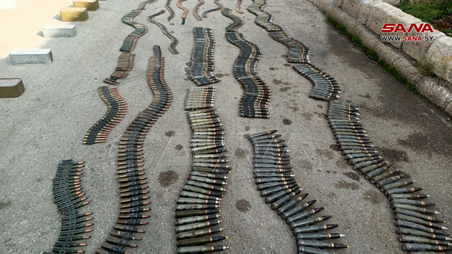 Deraa, 29 dic (SANA) Las autoridades competentes incautaron armas y municiones dejadas por la organización terrorista (Daesh), en la localidad de Yadouda en el oeste de la provincia de Deraa, en el sur del país.