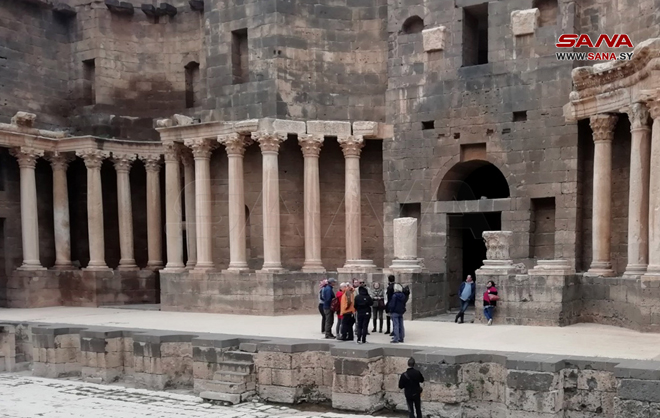 Deraa, 1 enero (SANA) Un grupo de 17 turistas de nacionalidades eslovena y croata visitó los sitios arqueológicos en la ciudad histórica de Bosra al-Sham, ubicada en la provincia de Deraa en el sur del país, e inscrita en la lista del patrimonio de la humanidad.