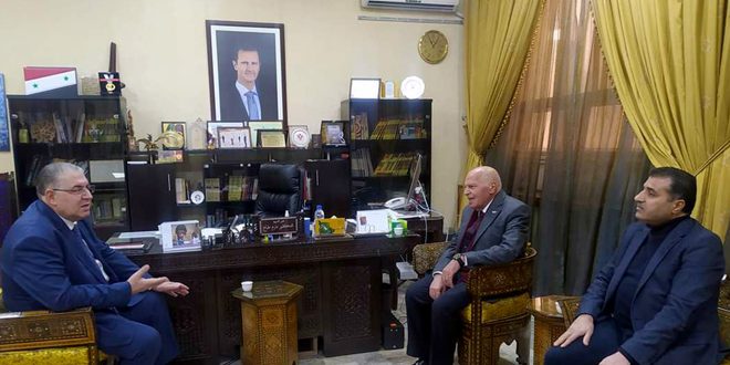 Damasco, 09 ene (SANA) El ministro de Educación, Darem Tabbaa, recibió hoy al director del Sindicato de Docentes de Egipto, Khalaf Al-Zeinati, y debatió con él, la cooperación educativa árabe, el papel de los docentes en la formación del pensamiento, la ciudadanía y la pertinencia, así como planes para el consolidar el sistema educativo en Siria y Egipto.