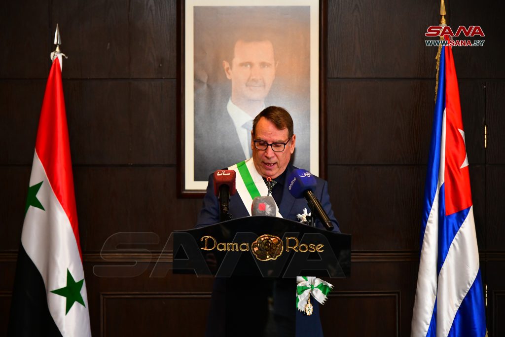 Tras recibir la medalla, el embajador Parga expresó su gratitud al presidente al-Assad por otorgarle esta medalla y la consideró un incentivo para continuar trabajando para fortalecer las relaciones bilaterales.