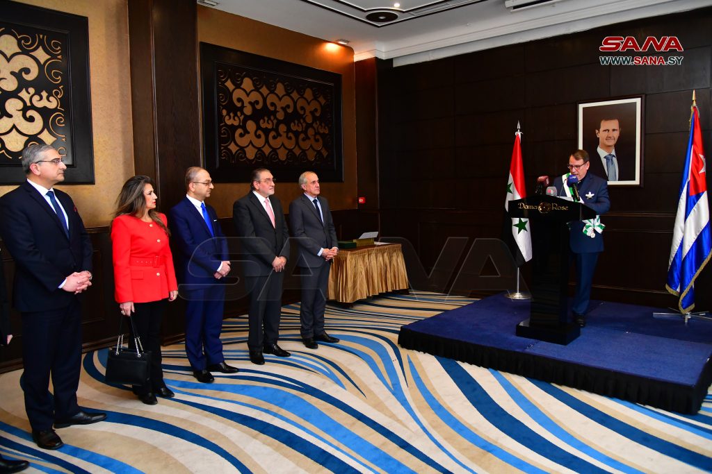 “Las relaciones sirio-cubanas son históricas y arraigadas, y los dos países siempre están en la misma fila porque lo que rige sus políticas son posturas y cimientos firmes y el respeto a la soberanía nacional y la independencia de la decisión nacional, además de trabajar por establecer un mundo equilibrado donde prevalezca la justicia y todos gocen de seguridad, prosperidad y estabilidad”, dijo el alto funcionario.