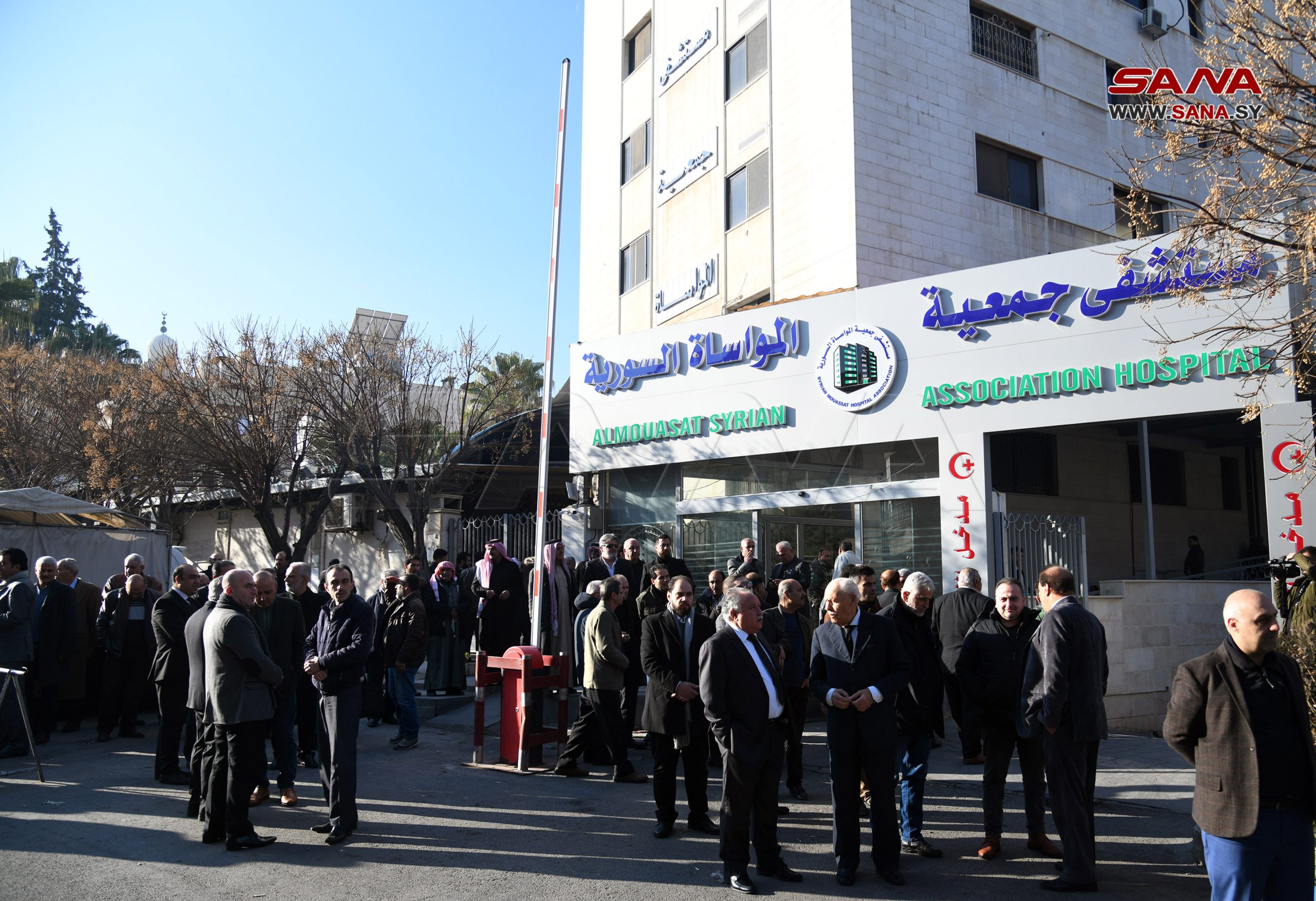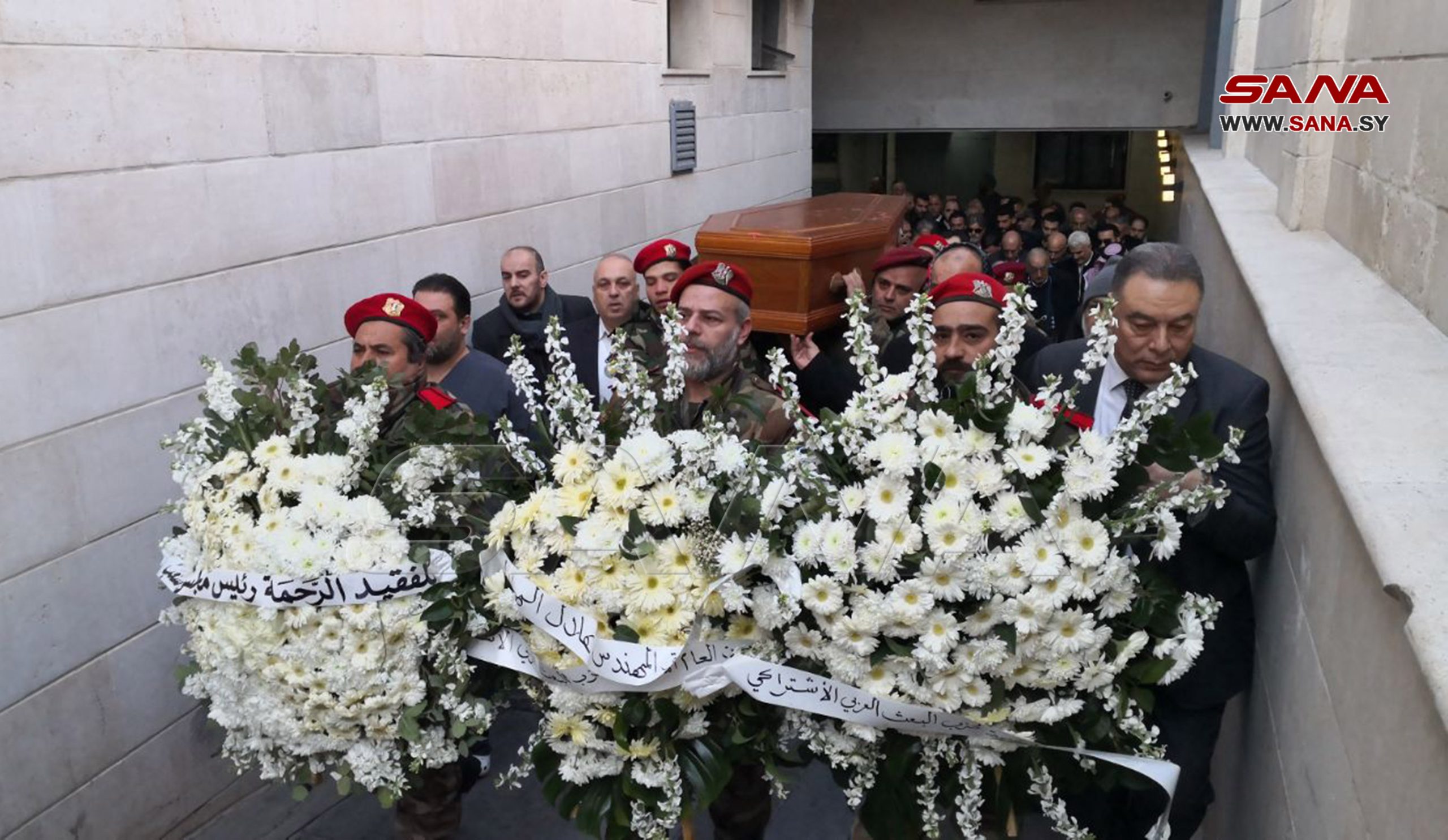 A la ceremonia fúnebre asistieron Hamouda Sabbagh, presidente de la Asamblea del Pueblo, los ministros de Información y de Industria, el asesor de la Presidencia de la República, Bishr Yaziji, los miembros de la Dirección Central del Partido, el Decano de Maestros Sirios, el jefe de la Unión de la Juventud Revolucionaria, el jefe de la Organización de Pioneros de Al-Baath, el jefe del Comité Popular de Apoyo al Pueblo Palestino y el director general de la Fundación Al-Quds International en Siria, además de figuras partidarias y sindicales.