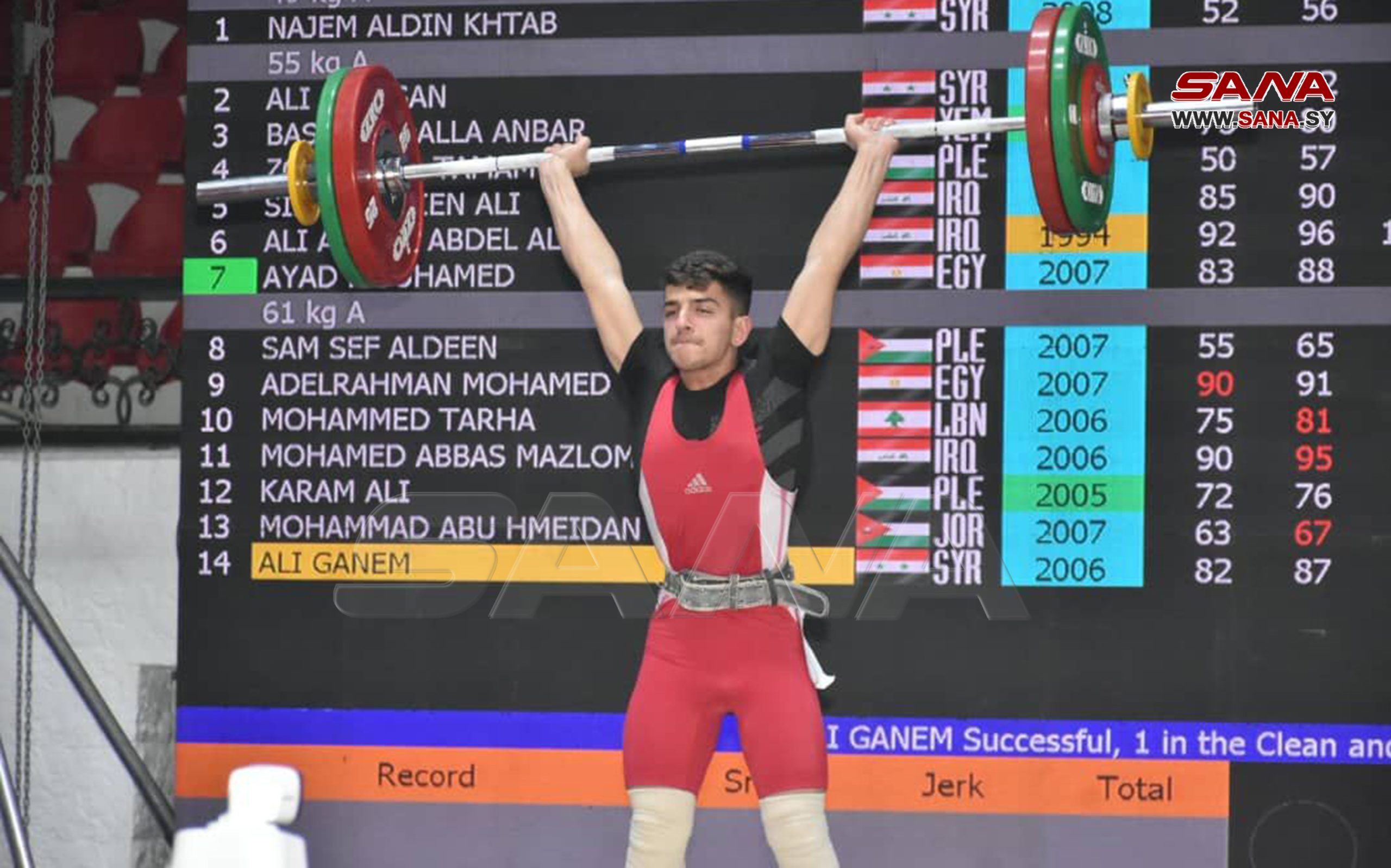 El pesista iraquí Saif Ali conquistó tres medallas de oro tras levantar 55 kg en la segunda jornada de este campeonato “categoría junior” mientras el egipcio Iyad Muhammad ganó el segundo lugar con tres medallas de plata.