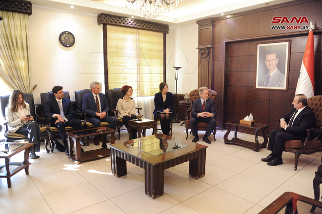 Damasco, 26 ene (SANA) El ministro de Administración Local y Medio Ambiente, Hussein Makhlouf, se reunió hoy en esta capital, con una delegación conformada del director ejecutivo del Programa Mundial de Alimentos “PMA” , David Beasley y la directora regional del Programa responsable de Medio Oriente y África del Norte, Corinne Fleischer.