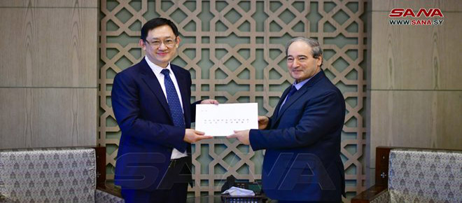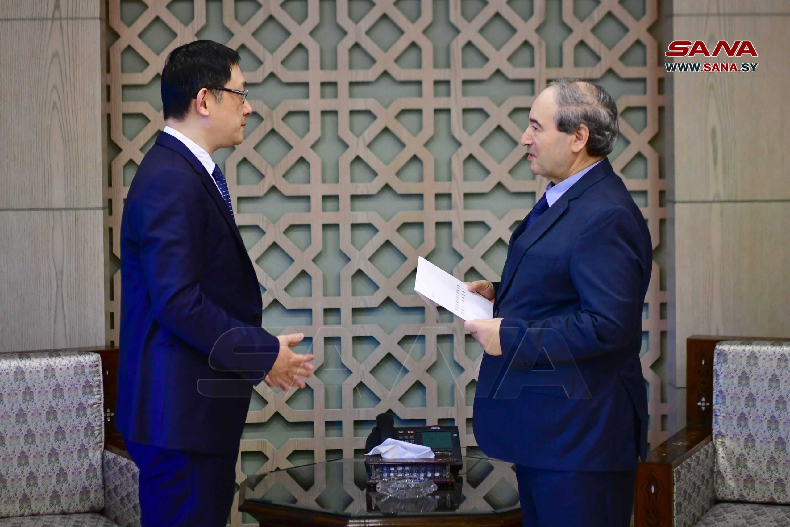 Damasco, 2 feb (SANA) El ministro de Asuntos Exteriores y Expatriados, Faisal Al-Mekad, recibió hoy una copia de las cartas credenciales de Xi Hongwei, el nuevo embajador extraordinario y plenipotenciario, de la República Popular China ante la República Árabe Siria.