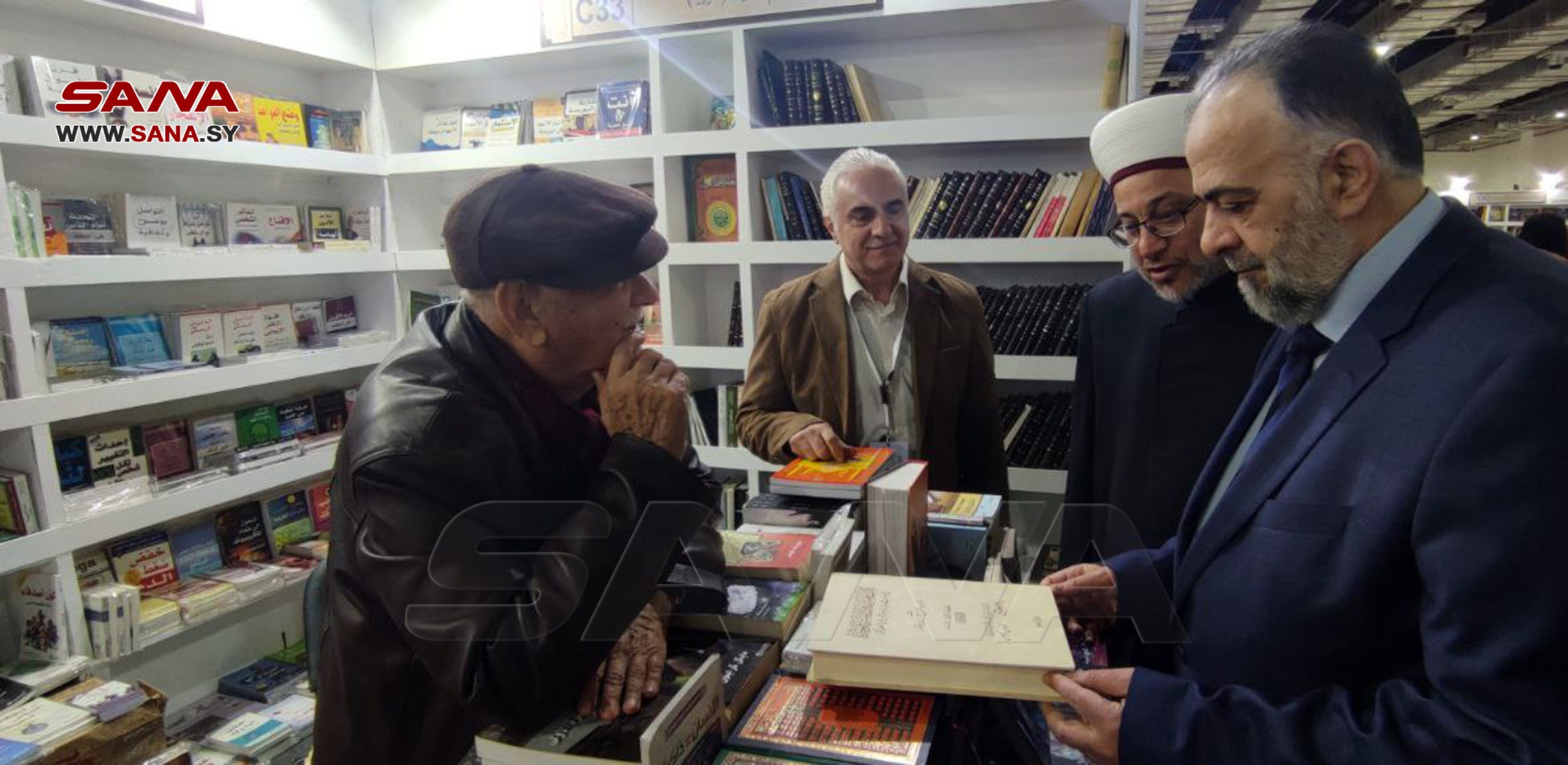Durante su recurrido por la Feria, al-Sayyid se reunió con varios propietarios de editoriales sirias participantes, y destacó el papel de los escritores y editores sirios en el enfrentamiento a las guerras impuestas a Siria y la región.