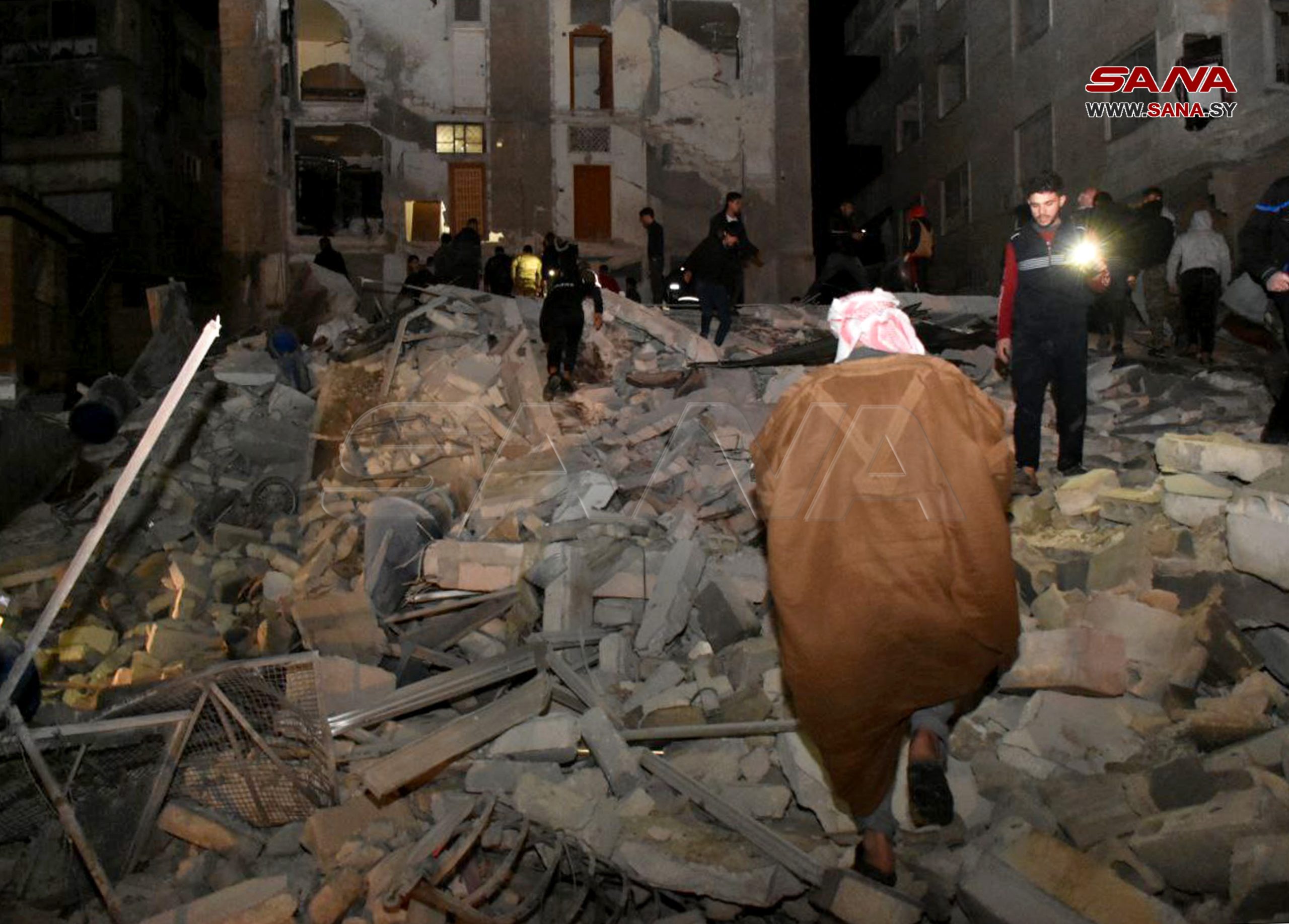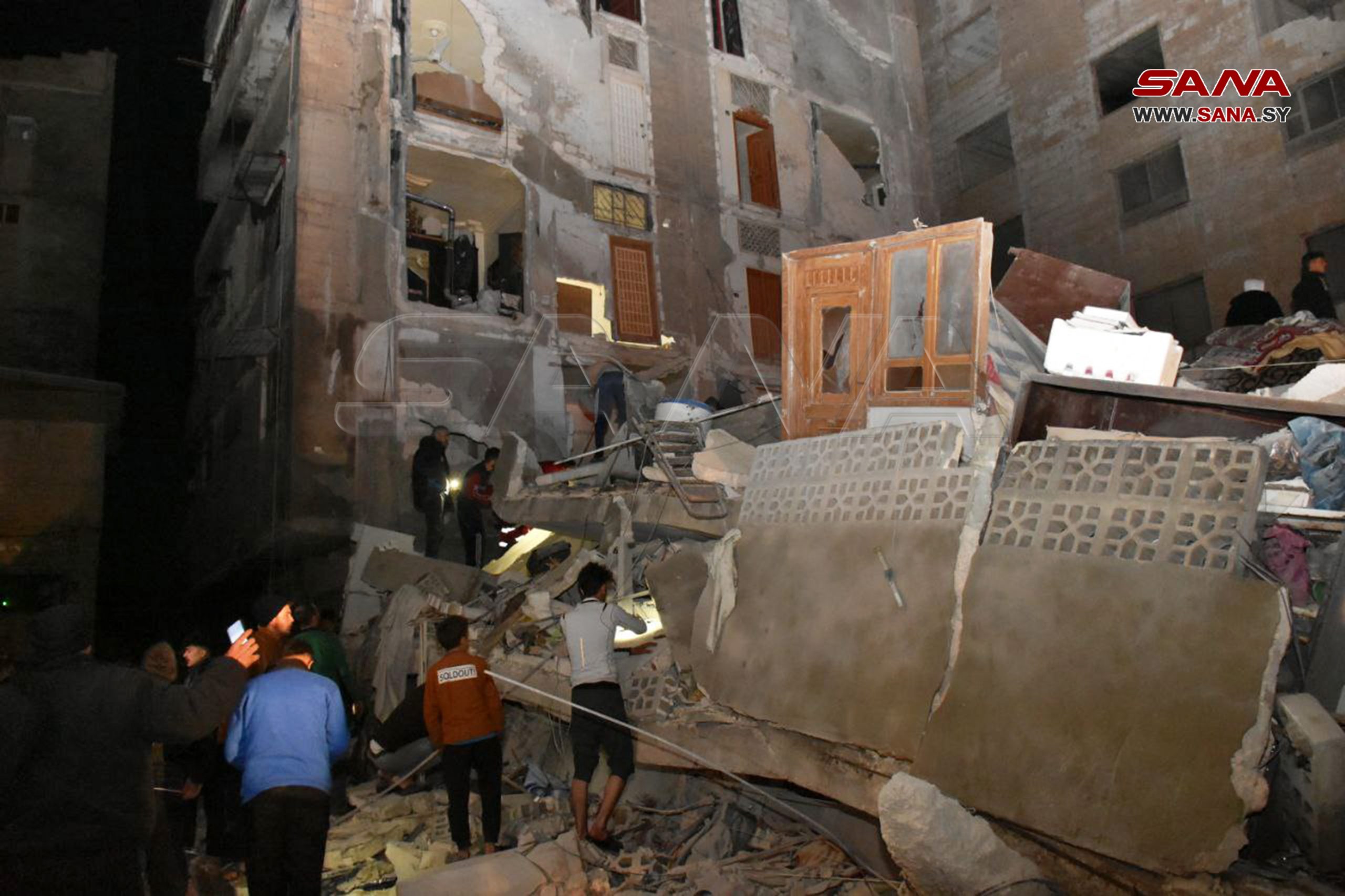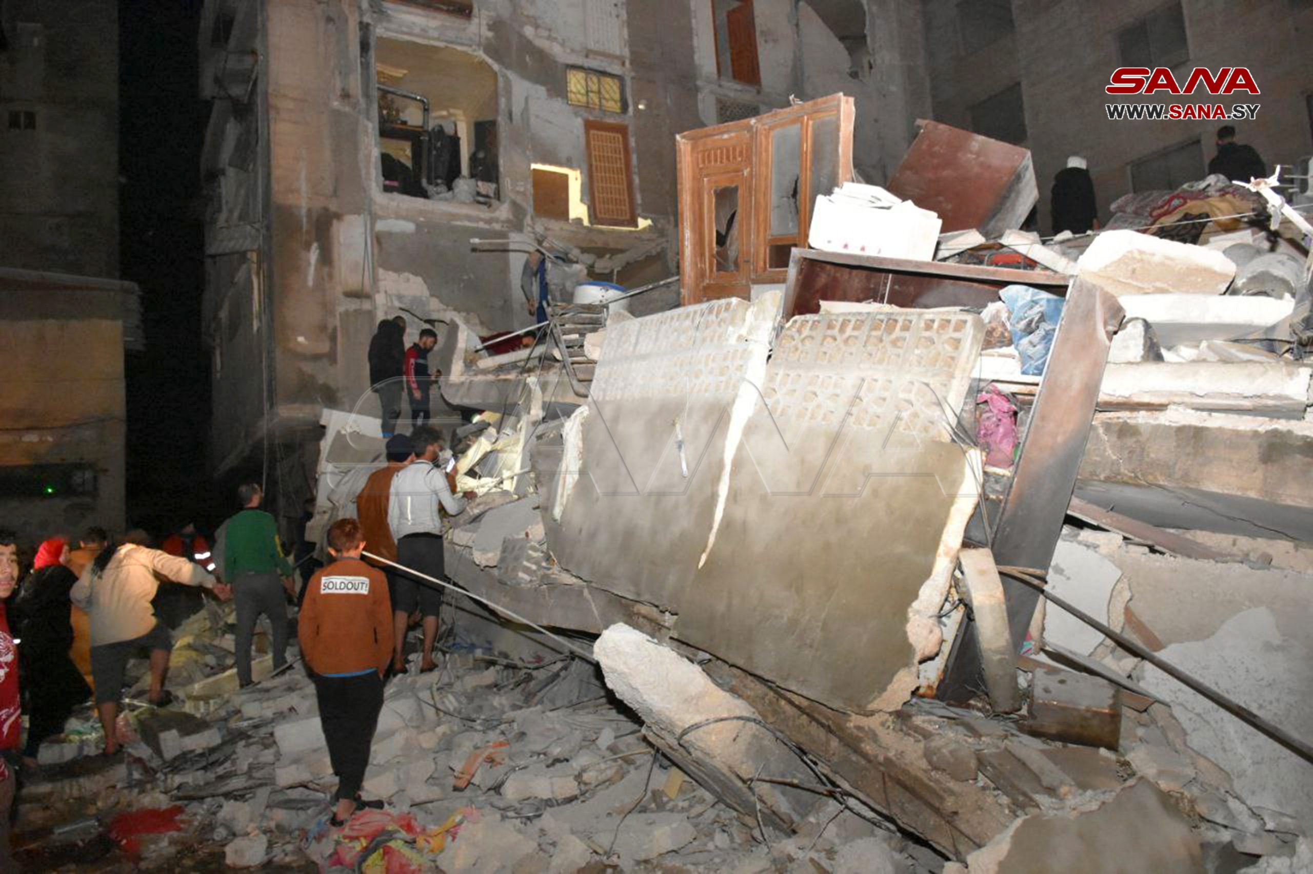 Una fuente de la Brigada de Bomberos de Hama comunicó a SANA que “un edificio de 8 pisos se derrumbó por completo en el barrio Al-Arbaeen en la cabecera provincial como resultado de los temblores, y los equipos de emergencia y defensa civil están trabajando para levantar los escombros en búsqueda de sobrevivientes