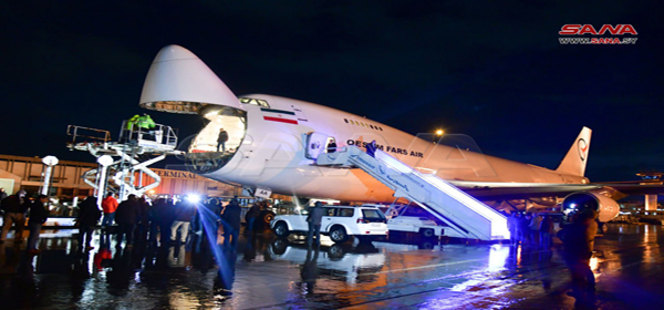 Damasco, 7 feb (SANA) Un avión iraní llegó al Aeropuerto Internacional de Damasco con ayuda humanitaria para los afectados por el terremoto que sacudió el país en la madrugada del lunes.