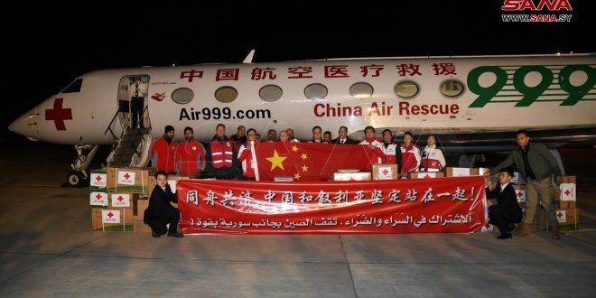 Un avión chino con materiales de socorro para los afectados por el terremoto aterrizó en el Aeropuerto de Damasco