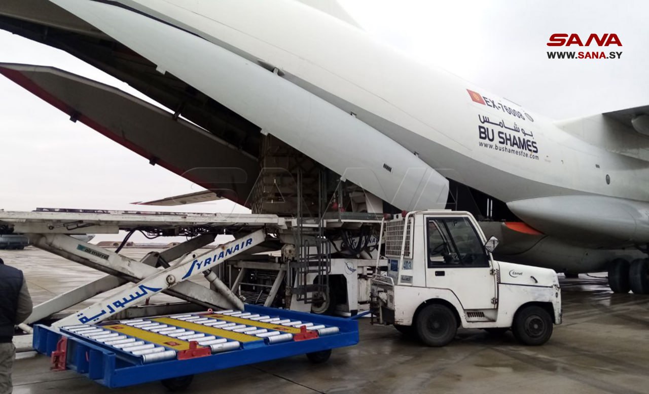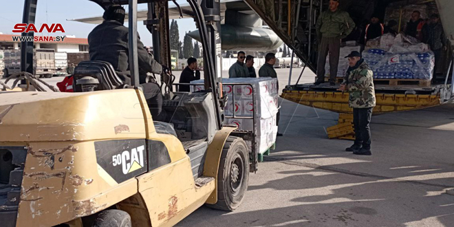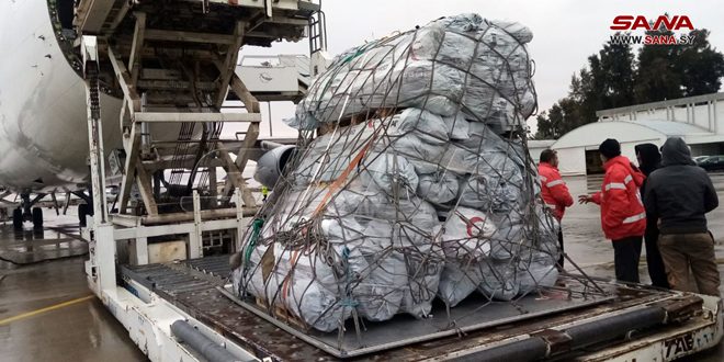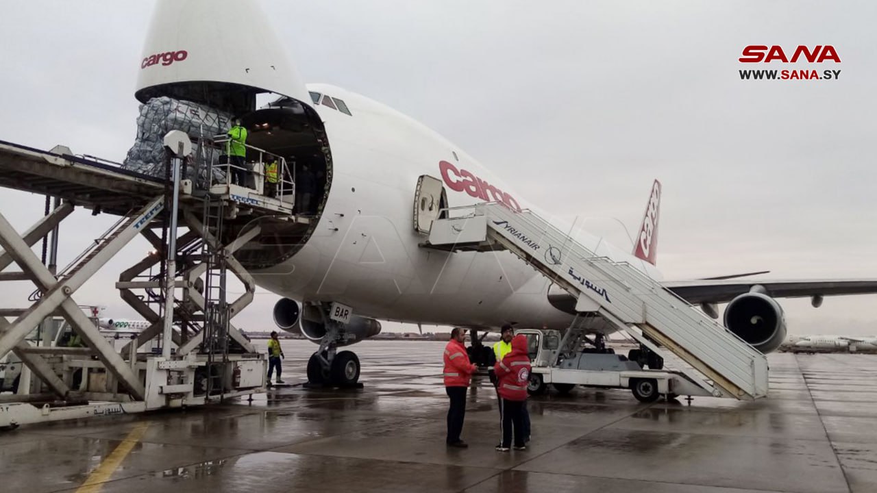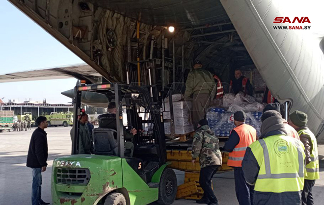 Imágenes de la descarga de ayuda humanitaria ofrecida por Emiratos Árabes Unidos y Túnez en los aeropuertos internacionales de Damasco y Alepo
