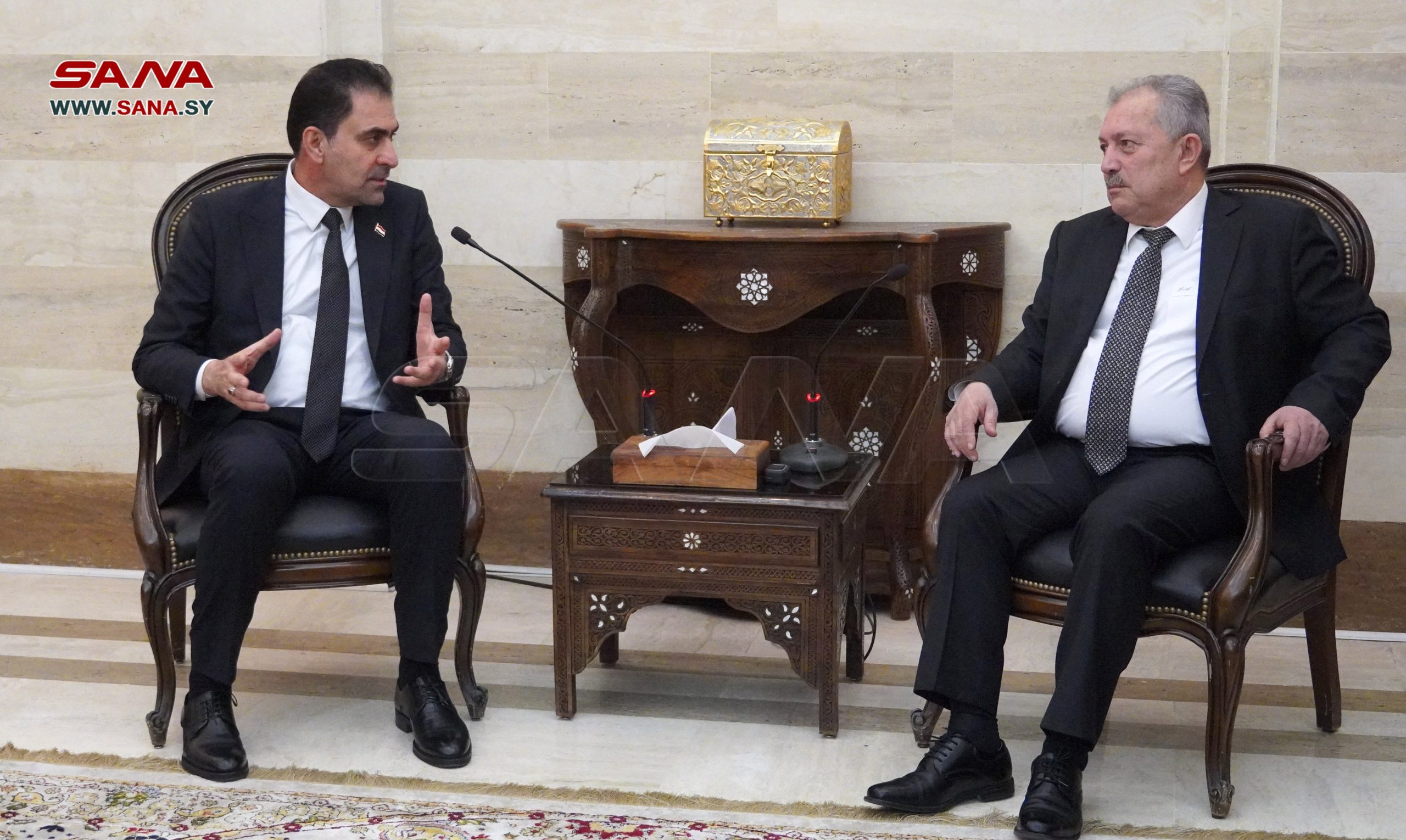 Damasco, 10 feb (SANA) El primer ministro Hussein Arnous, se reunió hoy con el primer vicepresidente del Senado iraquí, Mohsen Al-Mandalawi y la delegación acompañante.