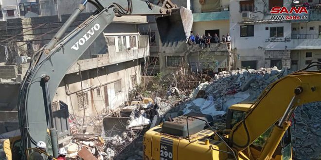 Latakia, 10 feb (SANA) Los equipos de rescate en Jableh recuperaron cinco cuerpos de personas fallecidas que estaban atrapadas debajo de los escombros del edificio Al-Rihawi, en la ciudad costera de Jableh.