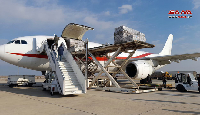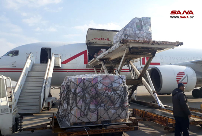 Un avión de ayuda proporcionada por la Organización Mundial de la Salud OMS llegó hoy al Aeropuerto Internacional de Damasco llevando a bordo 37 toneladas de suministros médicos de emergencia, materiales para el tratamiento de la neumonía y tiendas de campaña para los afectados por el terremoto.
