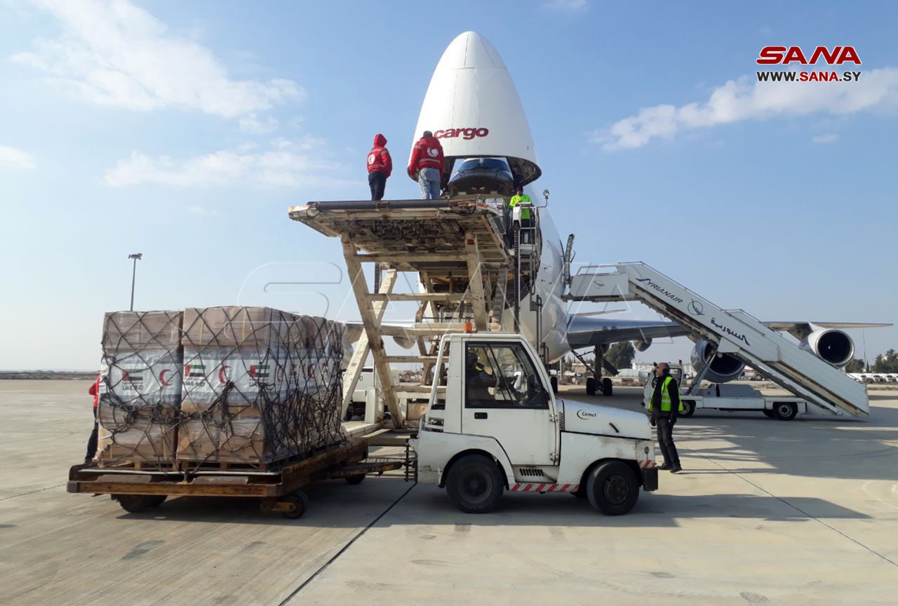 Mientras tanto, continúa el puente aéreo de ayuda humanitaria desde Emiratos Árabes Unidos a Siria, y aterrizó otro avión emiratí en el aeropuerto internacional de Latakia con 26 toneladas de alimentos y ayuda humanitaria para las personas afectadas por el terremoto.