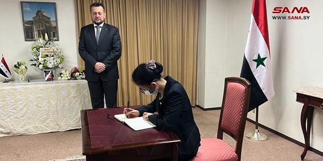 Tokio, 14 feb (SANA) Representantes del Ministerio de Relaciones Exteriores de Japón, varios embajadores y miembros del cuerpo diplomático acreditado en Tokio, ciudadanos y figuras oficiales sirios y japoneses visitaron la sede de la Embajada de Siria para ofrecer sus condolencias por las víctimas del terremoto .