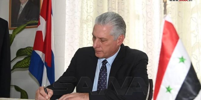 La Habana, 14 feb (SANA) El presidente de Cuba, Miguel Díaz-Canel Bermúdez, visitó hoy la Embajada de Siria en La Habana, y ofreció sus condolencias por las víctimas del devastador terremoto que azotó esta nación.