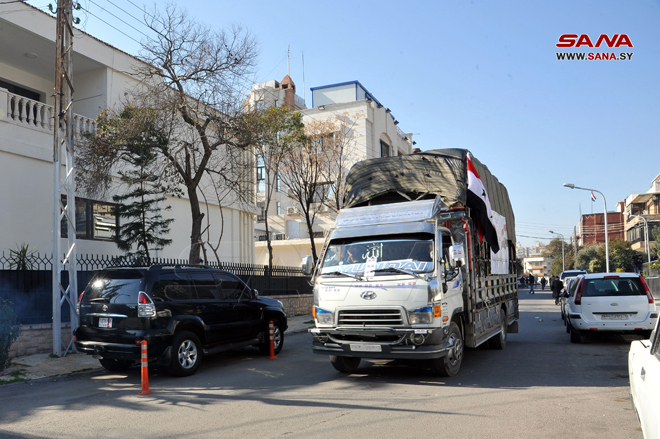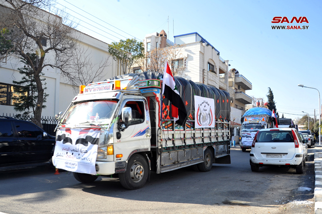 Damasco, 18 feb (SANA) Un convoy de ayuda humanitaria yemení partió hoy desde la sede de la Embajada de Yemen en Damasco para apoyar a los afectados por el terremoto.