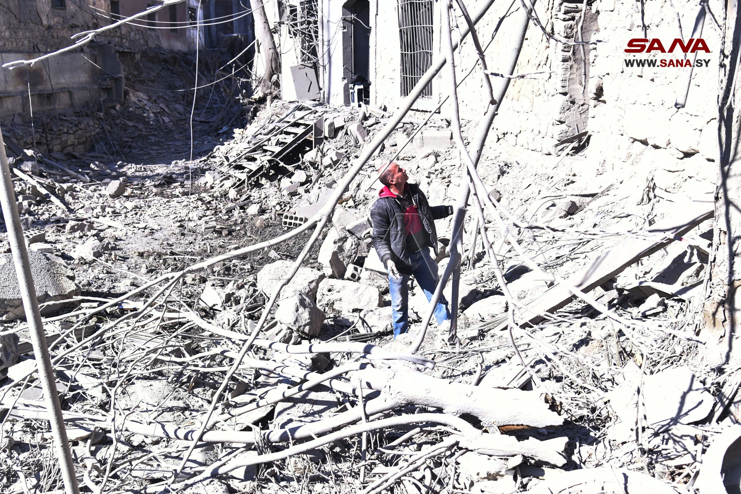 Damasco, 19 feb (SANA) El ataque israelí llevado a cabo la madrugada de hoy contra la ciudad de Damasco provocó graves daños materiales en varios edificios situados dentro de la Ciudadela de Damasco, y heridas a uno de los guardias de turno, además de daños materiales en el Centro Cultural Árabe de Kafarsouseh.