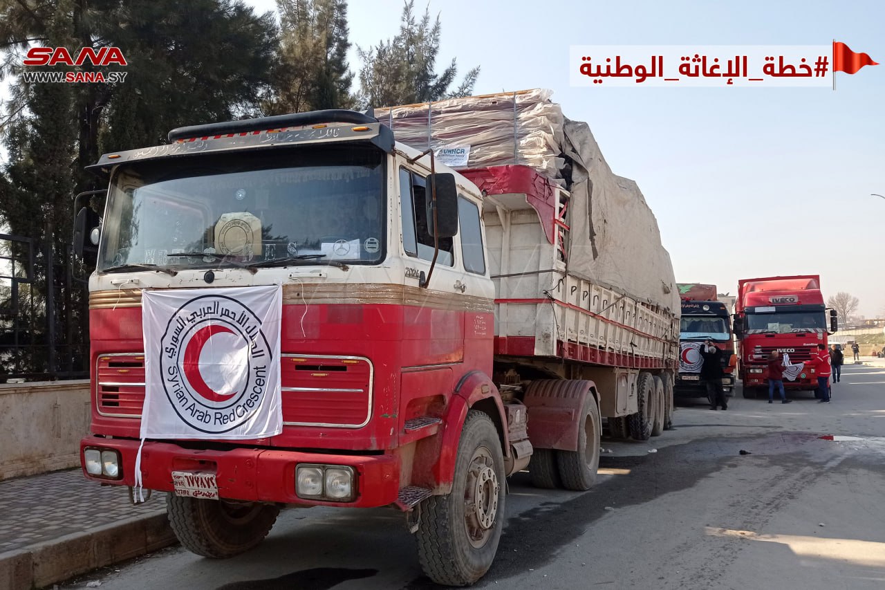 A nivel nacional, un convoy de ayuda humanitaria compuesto por 21 vehículos cargados con mantas y material médico y de socorro se dirigió al barrio de Sheikh Maqsoud en Alepo bajo la supervisión de la Media Luna Roja Árabe Siria.
