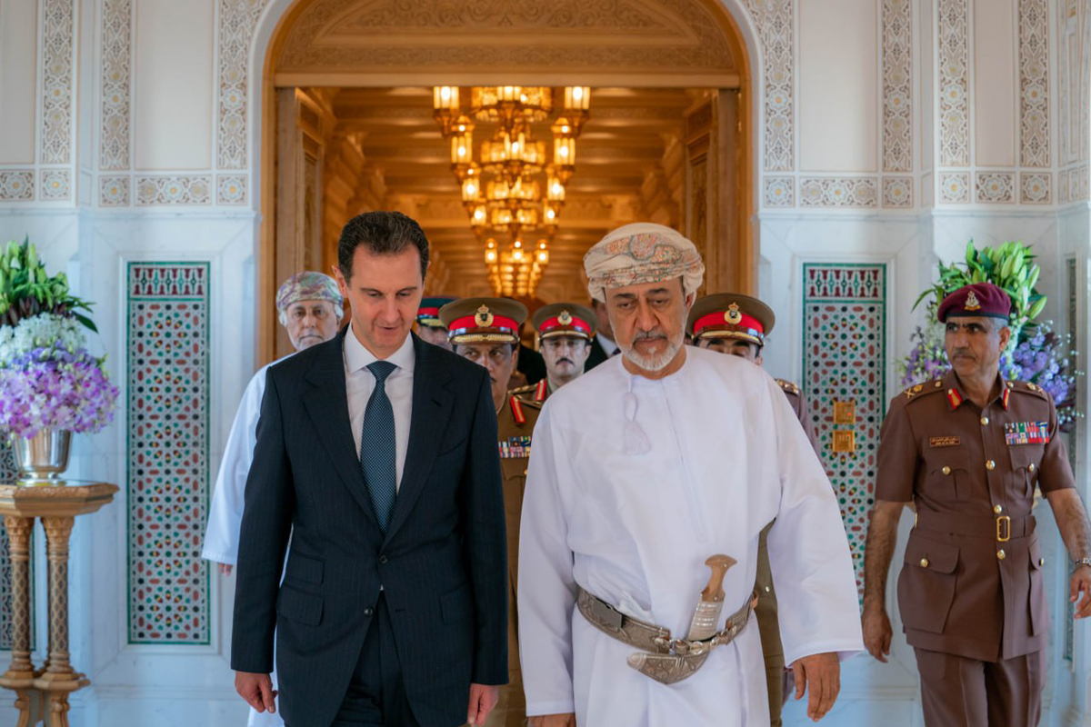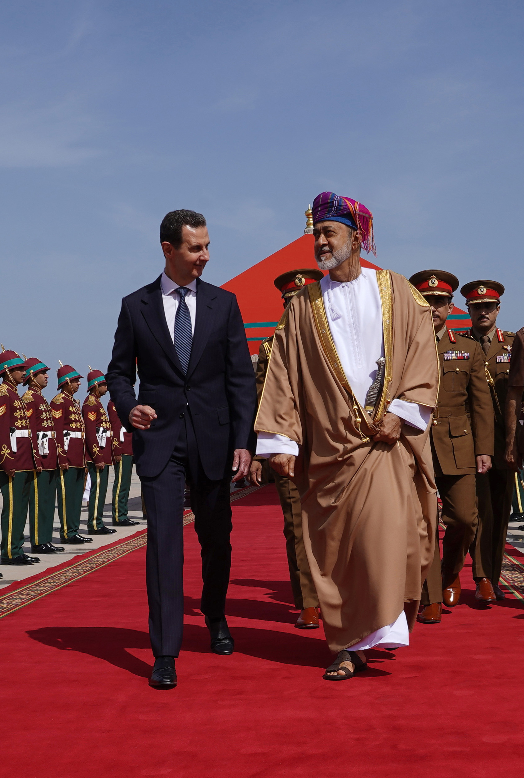 El presidente Bashar Al-Assad y el sultán Haitham bin Tariq celebraron una sesión oficial de conversaciones en el Palacio de Al-Baraka Al-Amer en Muscat, en presencia de las dos delegaciones oficiales.