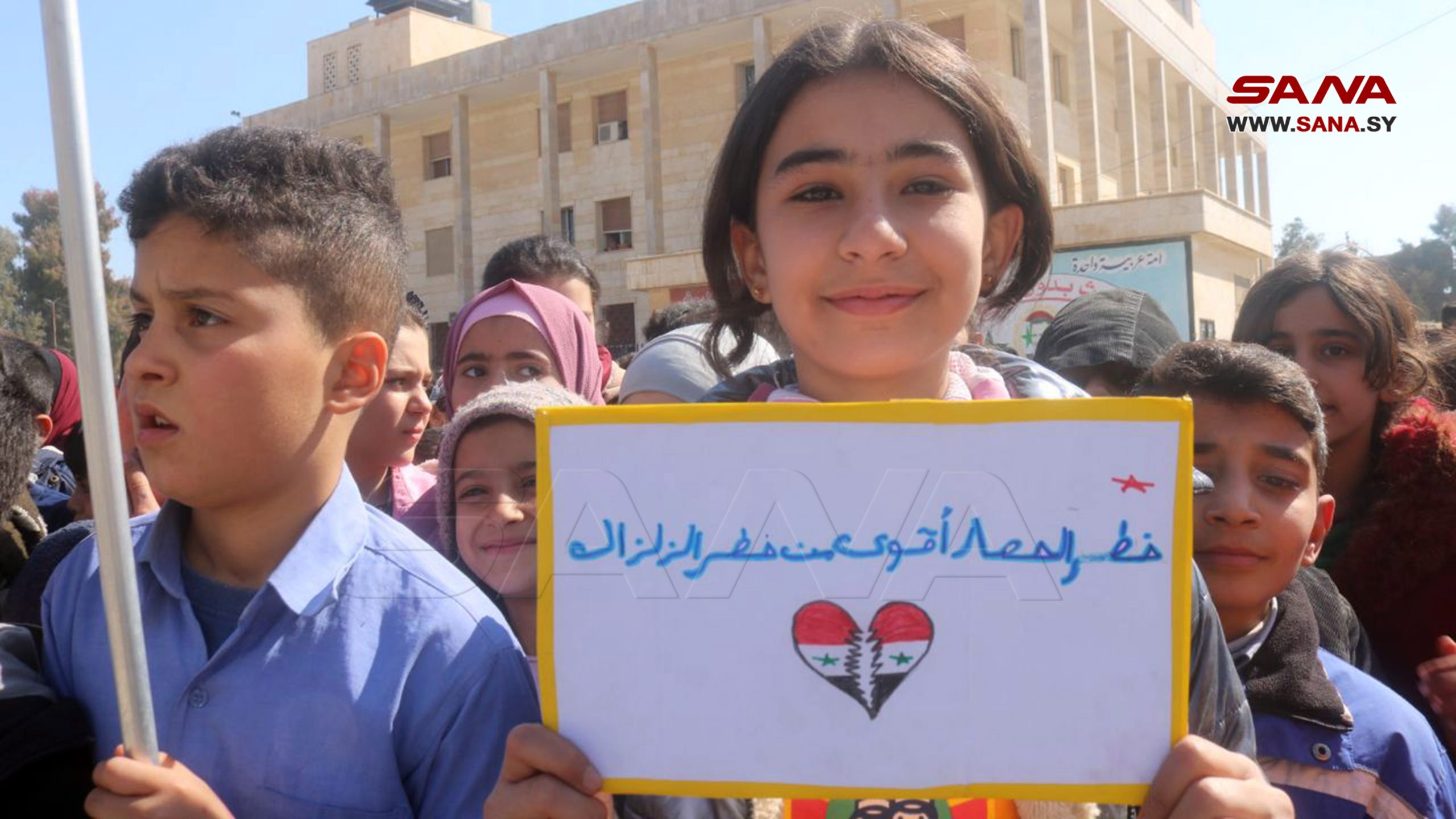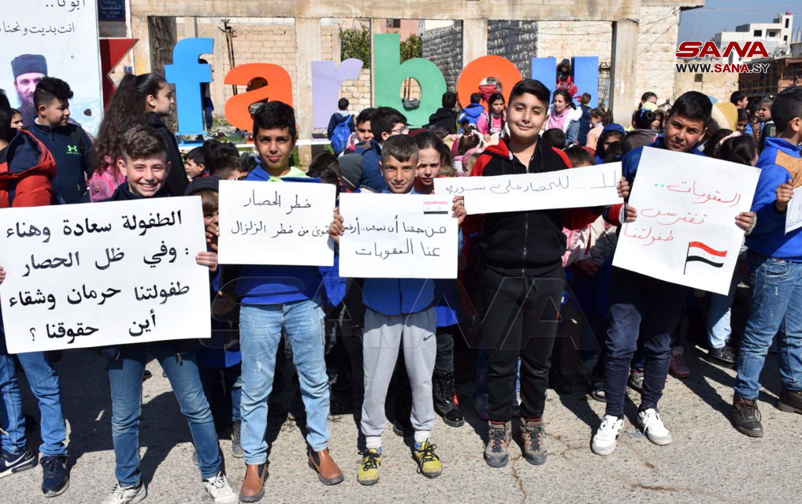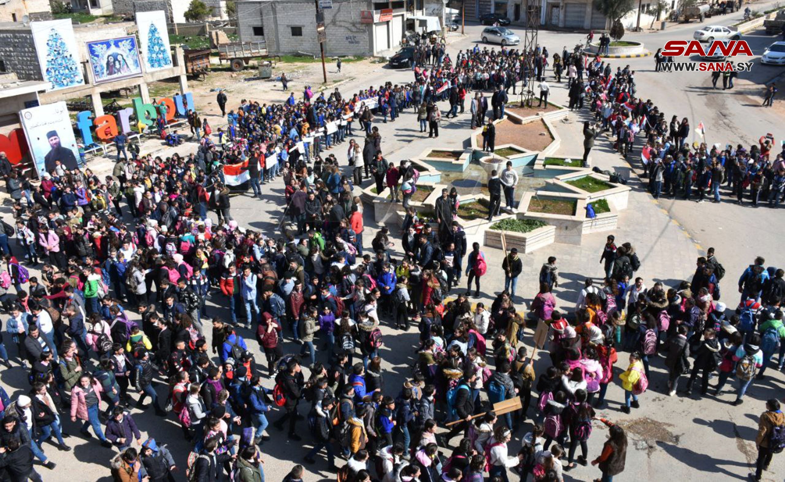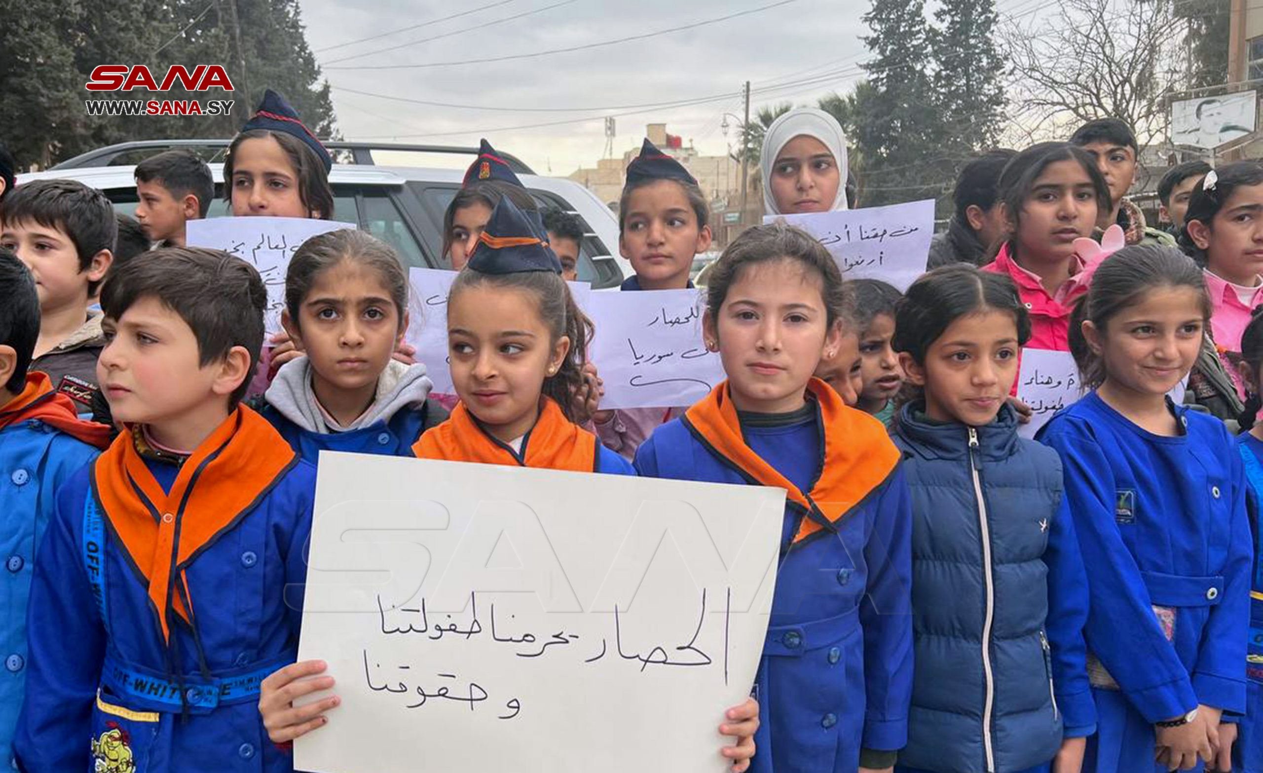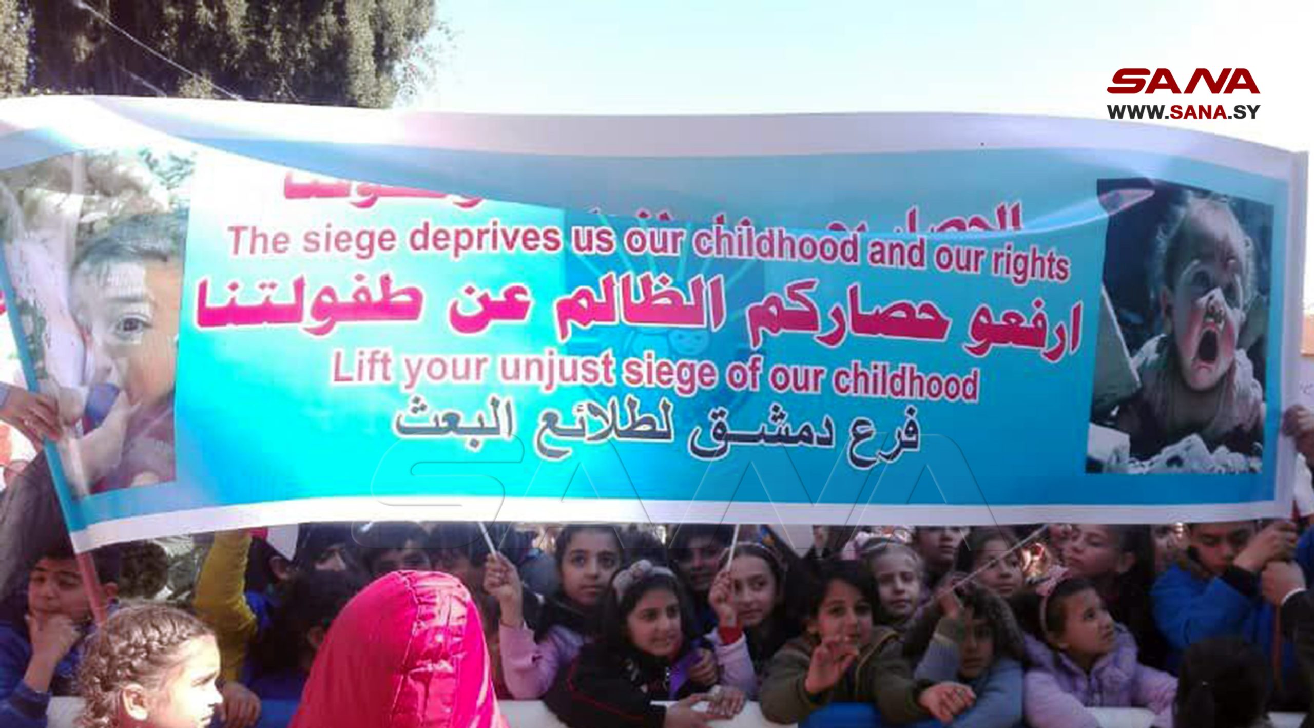Provincias, 22 feb (SANA) Decenas de estudiantes sirios de la mayoría de las provincias sirias expresaron su rechazo a las medidas coercitivas unilaterales impuestas contra Siria por Estados Unidos y sus aliados.