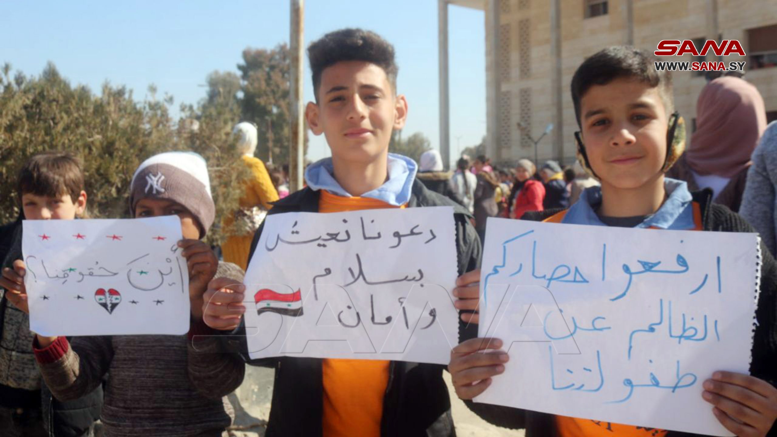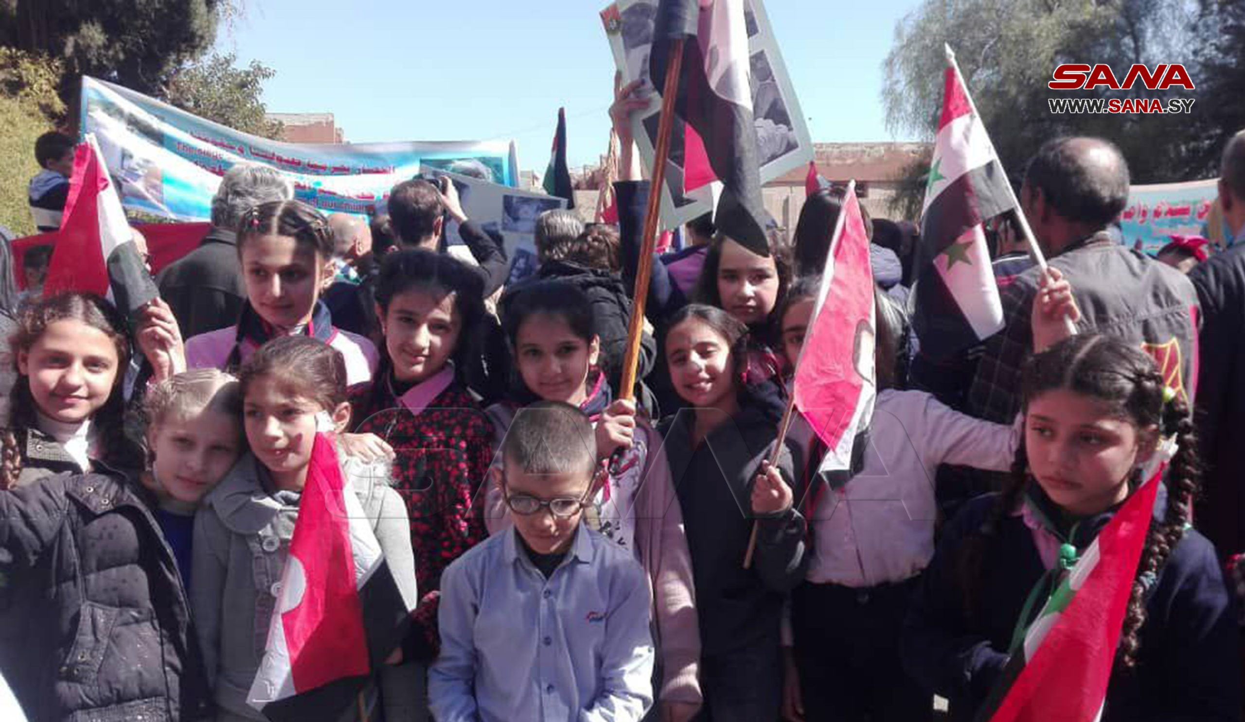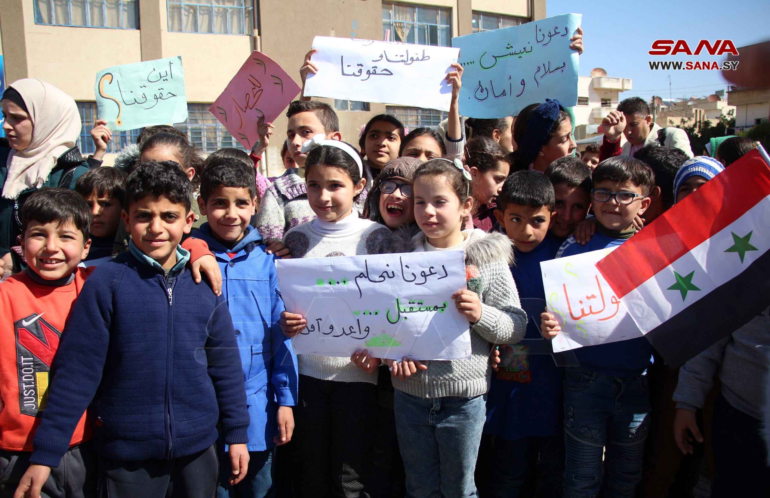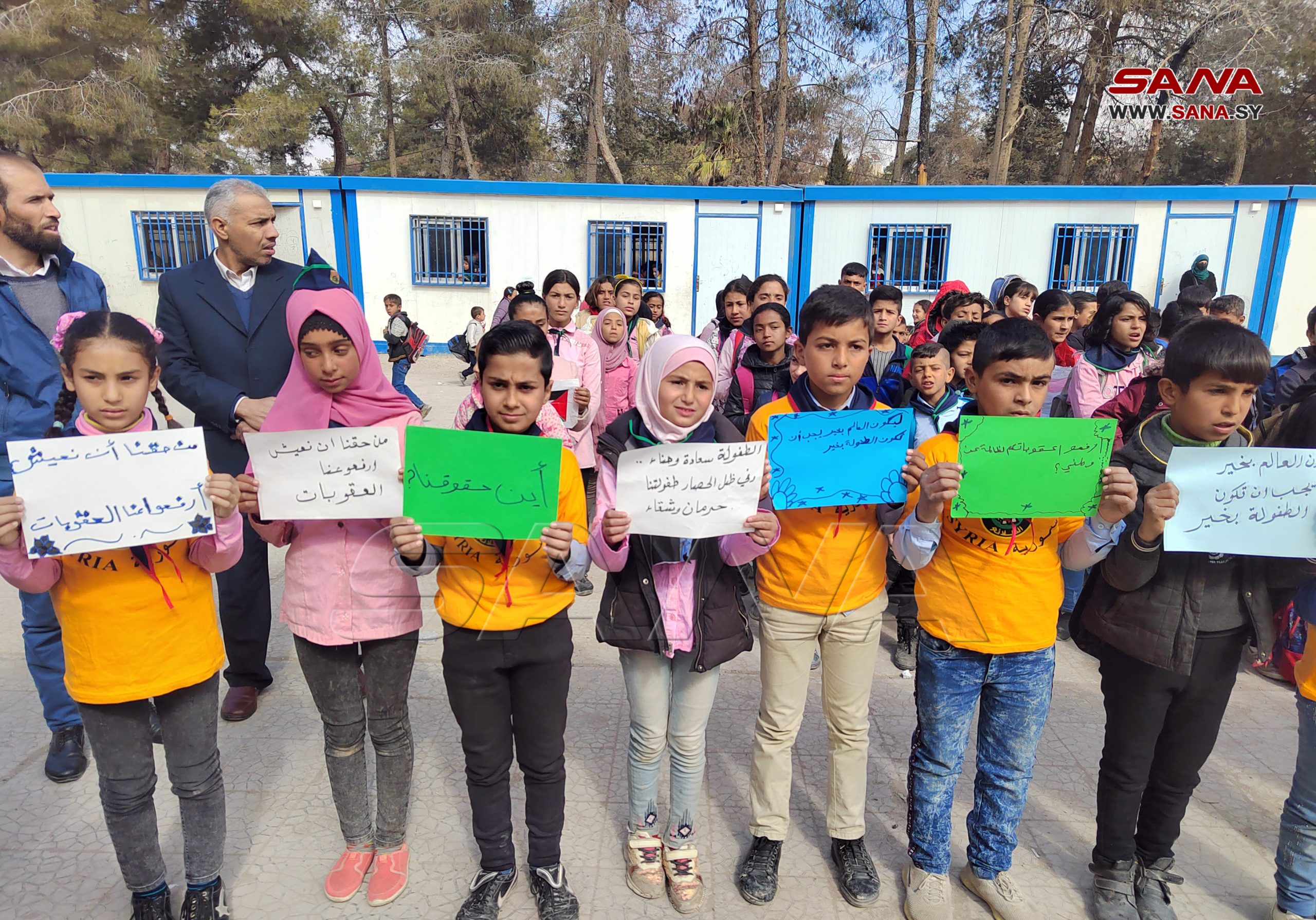 Provincias, 22 feb (SANA) Decenas de estudiantes sirios de la mayoría de las provincias sirias expresaron su rechazo a las medidas coercitivas unilaterales impuestas contra Siria por Estados Unidos y sus aliados.