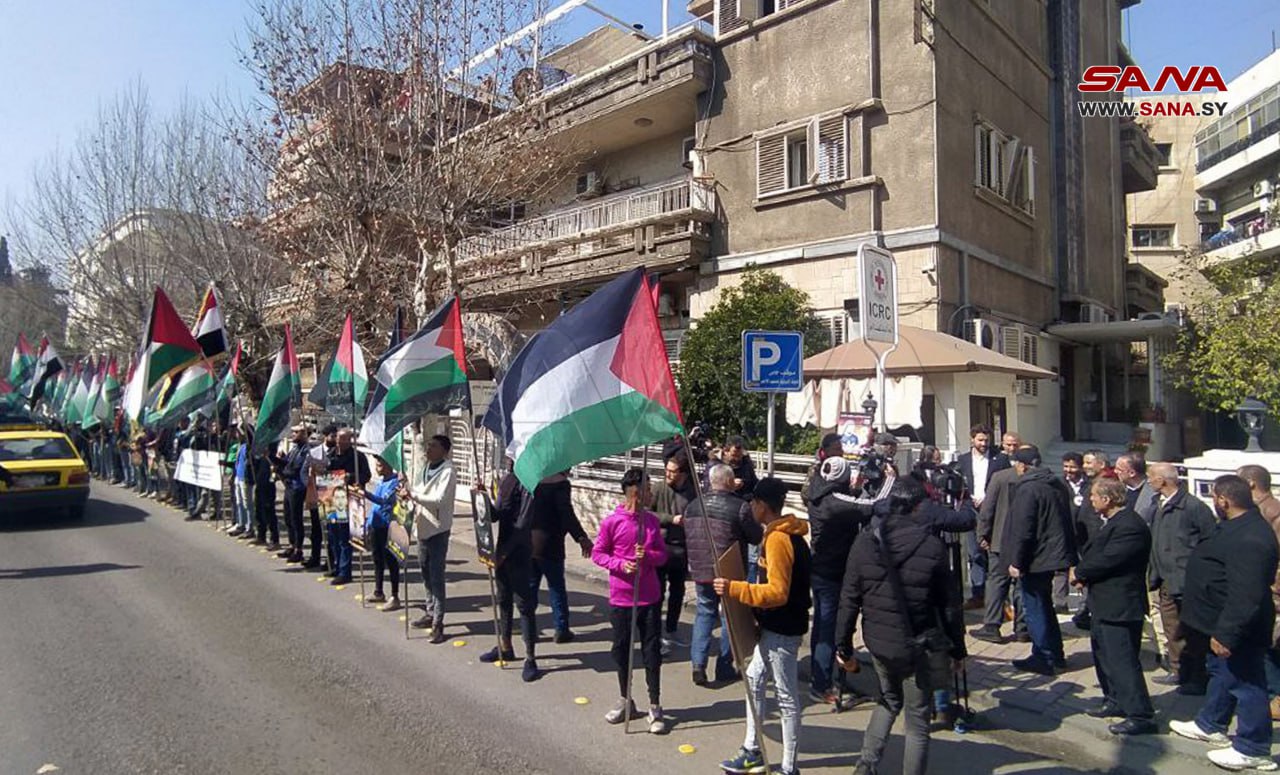 Damasco, 23 feb (SANA) Varias fuerzas y movimientos palestinos convocaron hoy a un acto de solidaridad frente a la sede del Comité Internacional de la Cruz Roja (CICR) en Damasco.