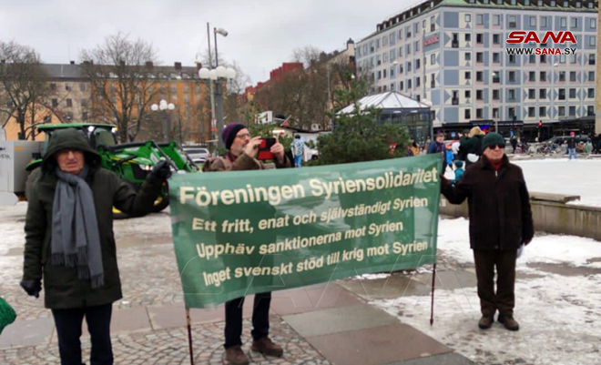 Estocolmo, 25 feb (SANA) La Comisión de Solidaridad con Siria convocó a un acto solidario con el pueblo sirio en la capital sueca, Estocolmo, al cual asistieron expatriados sirios y árabes, y activistas solidarios.