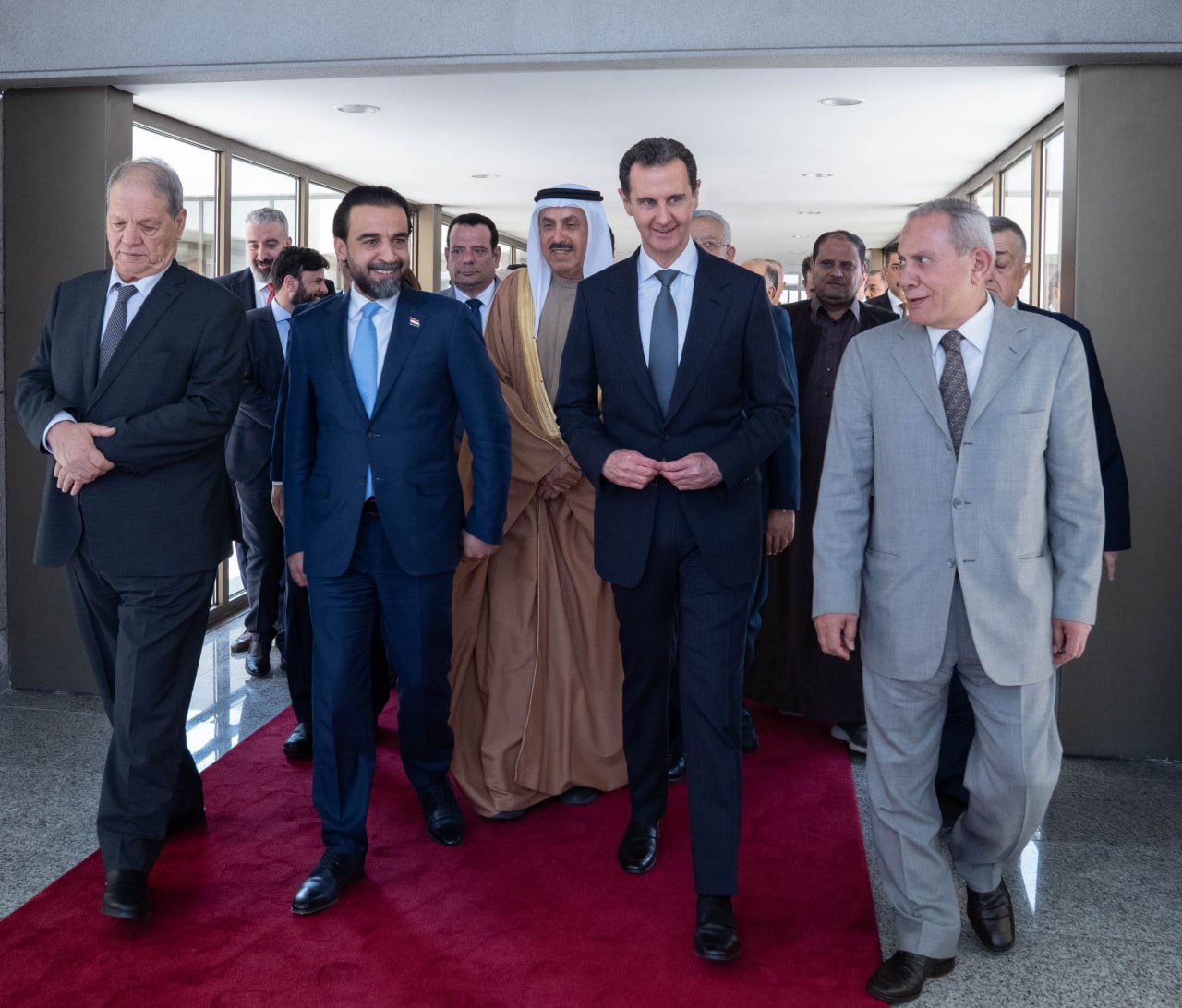 La delegación está confirmada por Muhammad al-Halbousi, el presidente de la Unión Interparlamentaria Árabe y los jefes de los parlamentos de Emiratos Árabes Unidos, Jordania, Palestina, Libia y Egipto, Sultanato de Omán y Líbano y el Secretario General de la Unión Interparlamentaria Árabe.