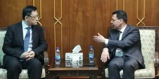 Damasco, 26 feb (SANA) El presidente de la Comisión de Planificación y Cooperación Internacional, Fadi Salti al-Khalil, y el embajador de la República Popular China en Damasco, Shi Hongwei, abordaron hoy las maneras de impulsar la cooperación bilateral entre los dos países en varios campos.