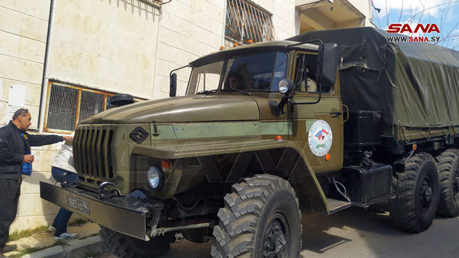 Ademas, se entregaron canastas de alimentos e insumos de salud proporcionados por Rusia a las familias necesitadas en las localidades de Besín en la provincia de Hama, y de Sheikh Maqsoud en Alepo.