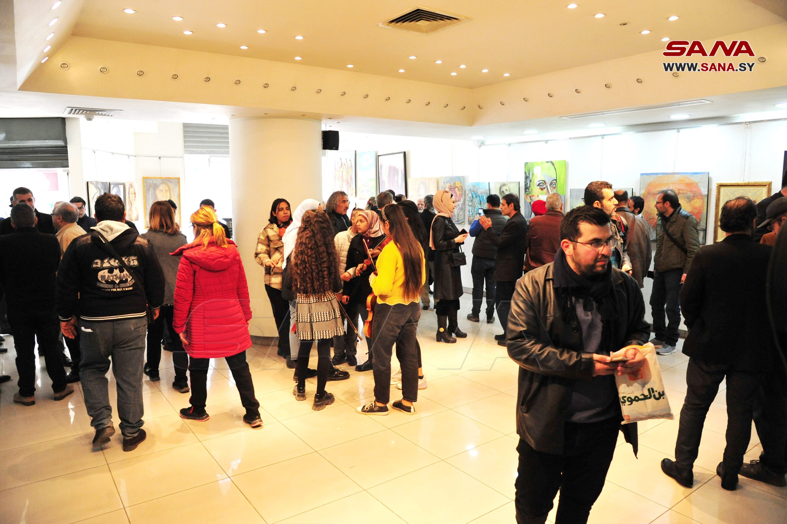 Más de 65 obras fueron exhibidas en dicha muestra organizada por la Unión de Artistas Plásticos de Siria, en cooperación con el equipo de “Huellas Humanas”.