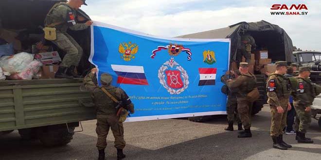 Latakia, 08 mar (SANA) El Centro de Coordinación de Rusia con sede en la base de Hemeimim en la provincia costera siria de Latakia, repartió este miércoles ayuda alimentaria a los residentes dela ciudad de Al-Haffah.